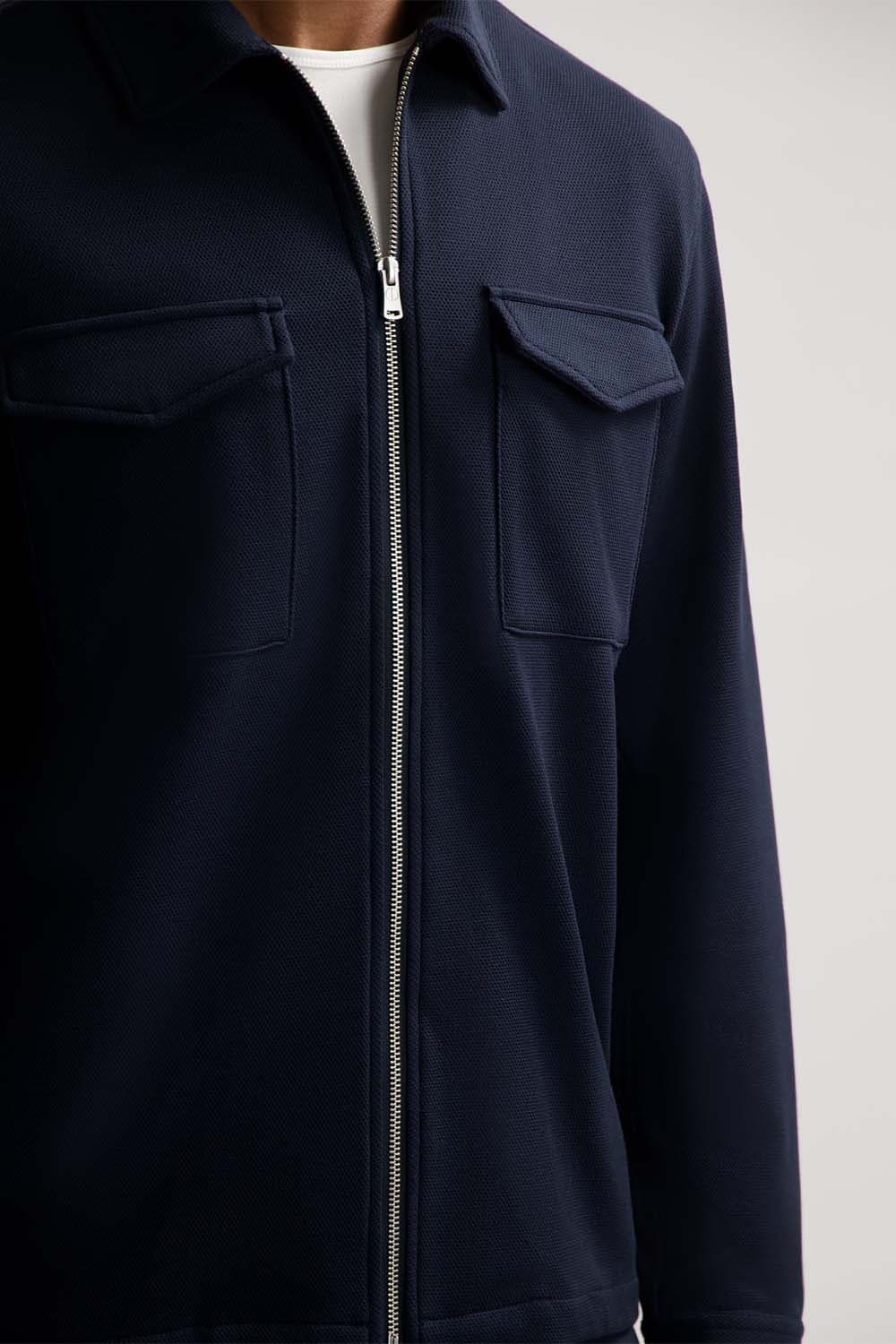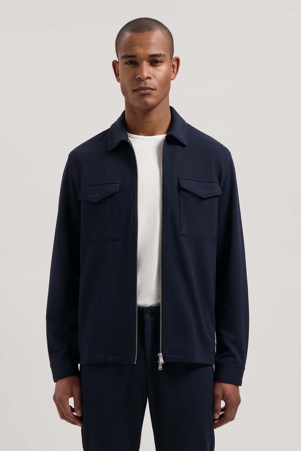 Het Overshirt Pike van Dstrezzed is een stijlvolle heren jas met een opstaande kraag en een ritsluiting. De voorzijde heeft praktische zakken, en de lange mouwen bieden comfort. Ideaal voor een zakelijke uitstraling met een regular pasvorm.