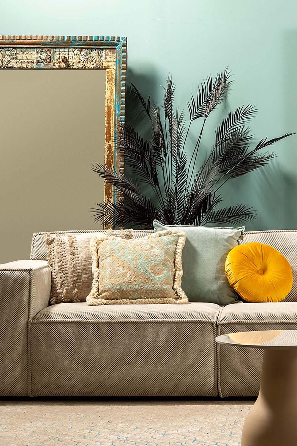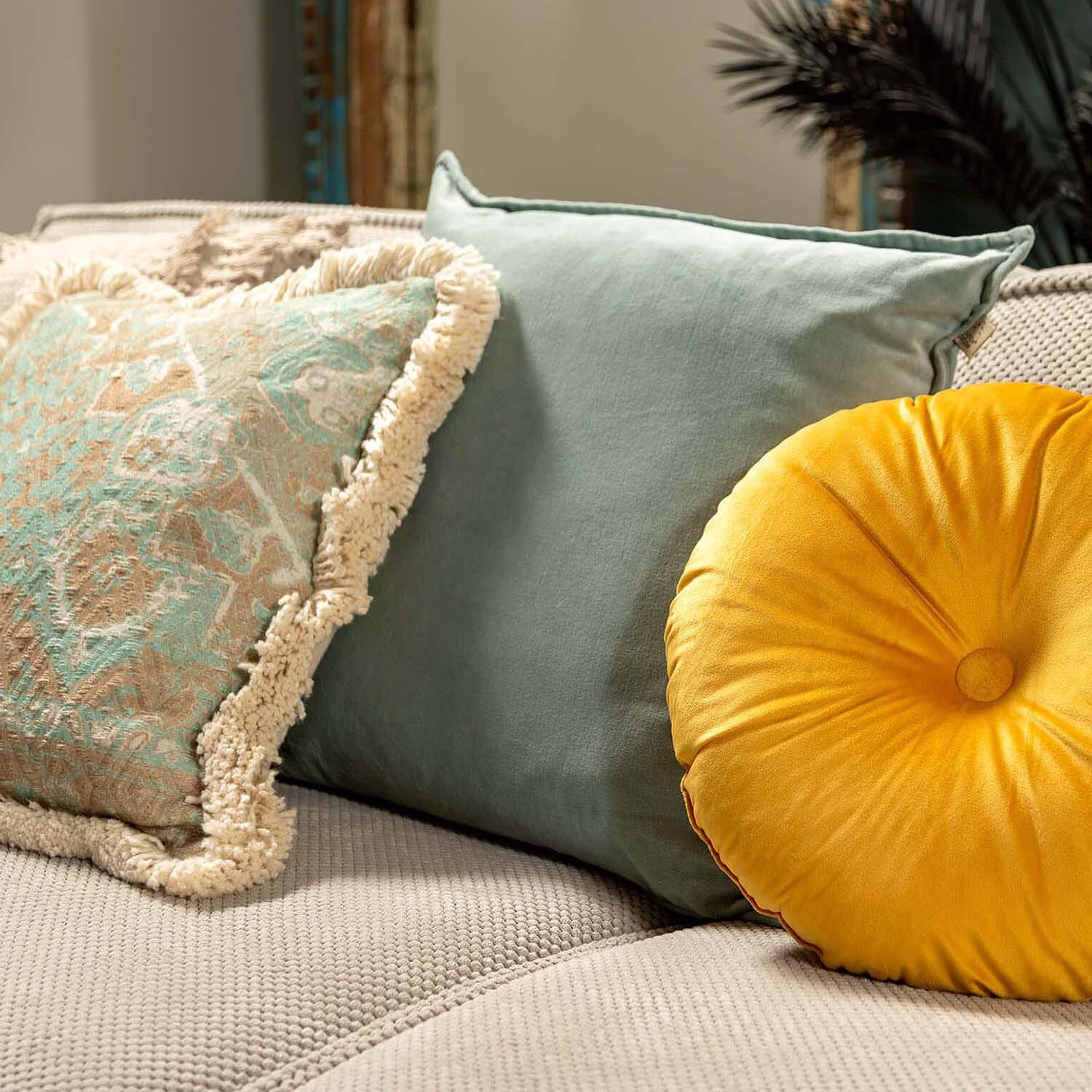 Kussen Synne 45x45 cm Harbor Gray van Dutch Decor is een stijlvol kussen met een grafisch patroon. De combinatie van zachte kleuren en de verfijnde franjes aan de randen maakt het een perfecte aanvulling voor elk interieur. Ideaal voor een warme, gastvrije sfeer.