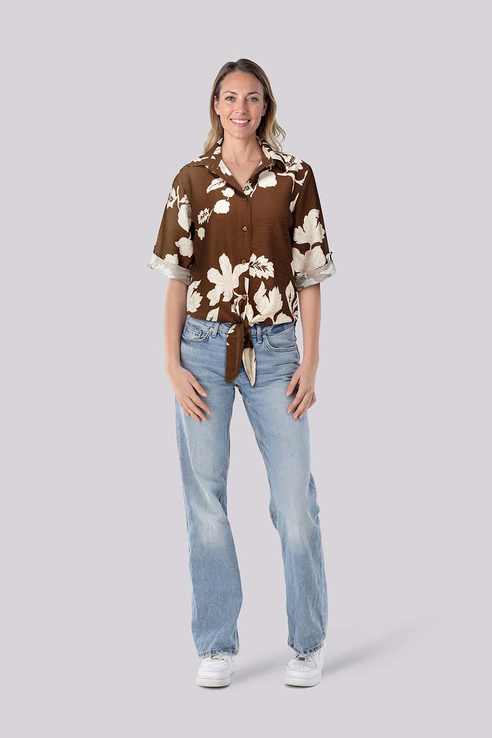 De Blouse All-Over Design van Enjoy is een stijlvolle casual blouse met een bohemian flair. Het heeft een spreidkraag, zakken op de voorzijde, 3/4 mouwen met turn-up afwerking en een bloemenpatroon. Perfect voor een toegankelijke en modieuze casual look.
