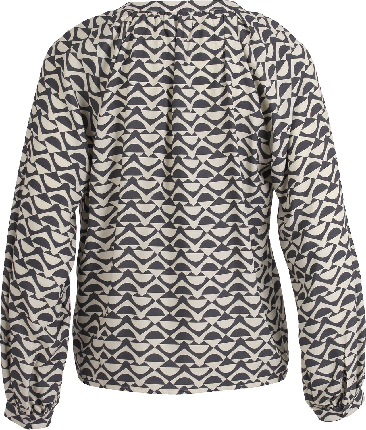 Blouse grafische print van Enjoy is een stijlvolle top met lange mouwen. Deze blouse heeft een opvallende grafische print in zwart en wit, wat een unieke uitstraling geeft. De soepele stof zorgt voor draagcomfort en de elastische boorden maken het geheel modieus en praktisch.