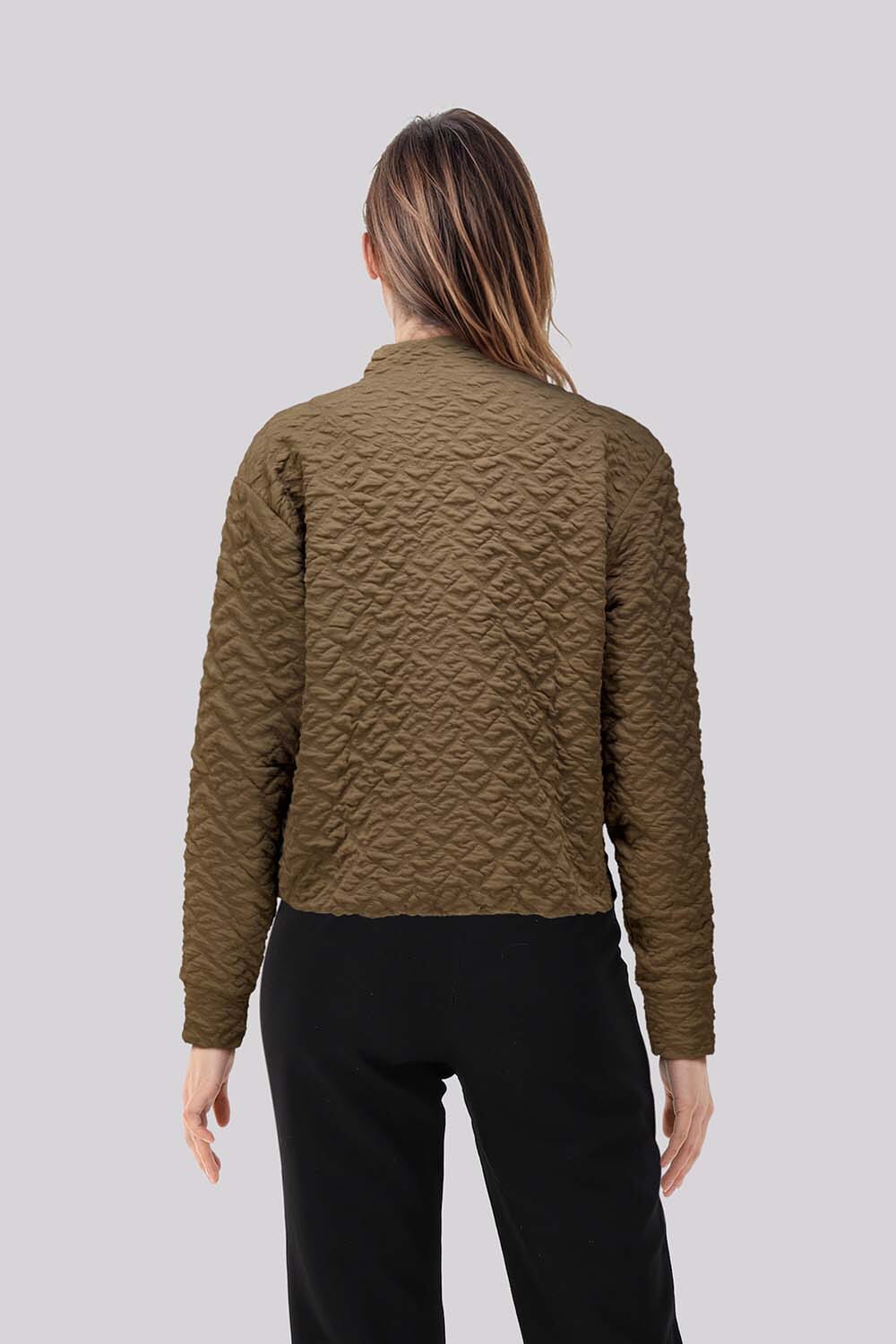 De Blazer Structuur van Enjoy is een stijlvolle toevoeging aan je collectie blazers. Met een casual stijl, opstaande kraag en ribgebreid mouwboord biedt deze bomberjas comfort en veelzijdigheid. De voorzakken en knoopsluiting maken het zowel praktisch als modieus.