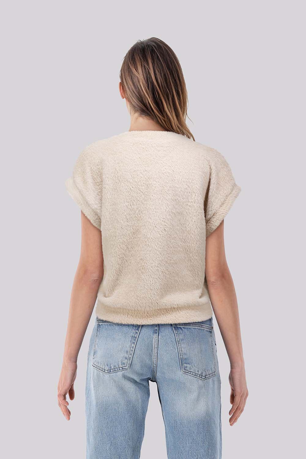 Het Enjoy gilet, een stijlvolle toevoeging aan elke garderobe, valt op door zijn casual stijl en v-hals. De knoopsluiting en cropped fit maken het gilet perfect voor een ontspannen dag. Het heeft geen mouw, waardoor het een luchtig en comfortabel kledingstuk is voor elke gelegenheid.