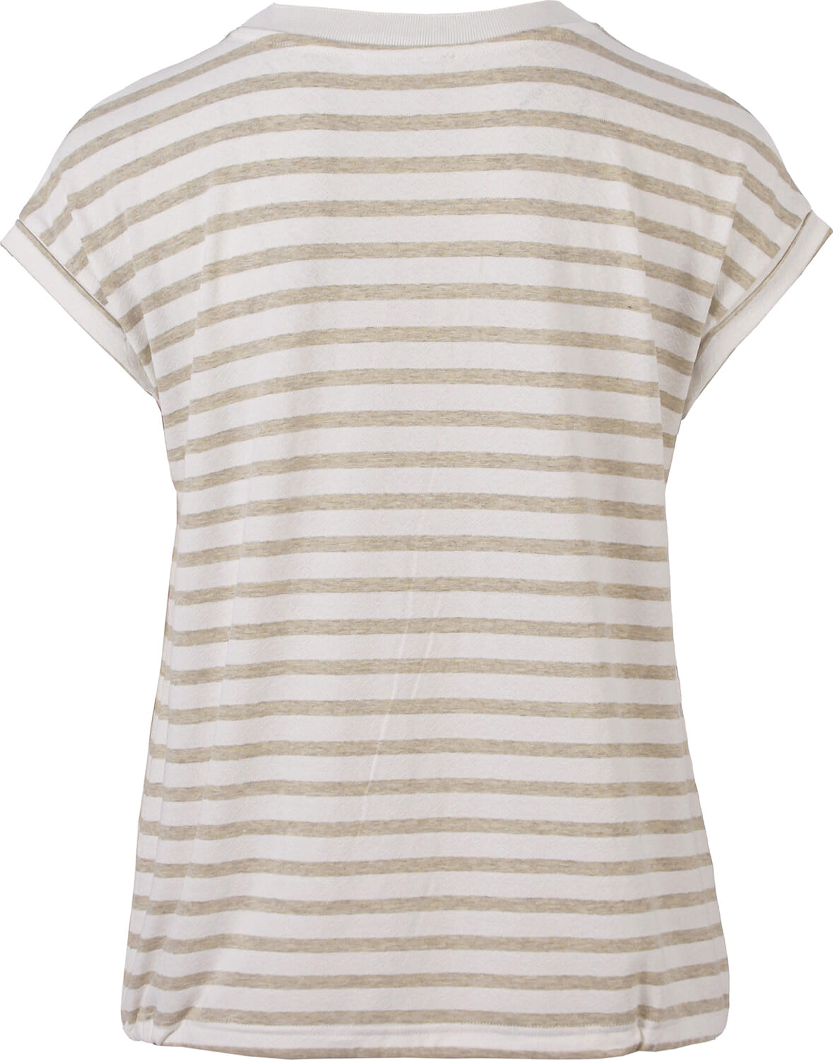 Het T-shirt van Enjoy combineert casual stijl met een speelse streep en korte mouw. De ronde hals zorgt voor een comfortabele pasvorm. Ideaal voor informele gelegenheden en een veelzijdige aanvulling op elke garderobe. Dit dames T-shirt straalt eenvoud en gemak uit.
