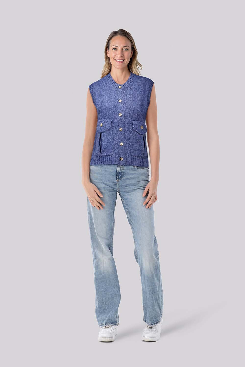 Gilet vest van Enjoy biedt casual stijl met zakken aan de voorzijde en knoopsluiting. Dit effen vest zonder mouwen is ideaal voor veelzijdig gebruik. De ribgebreide details voegen een subtiele flair toe, terwijl de zachte stof comfort biedt. Perfect voor een moeiteloze look.