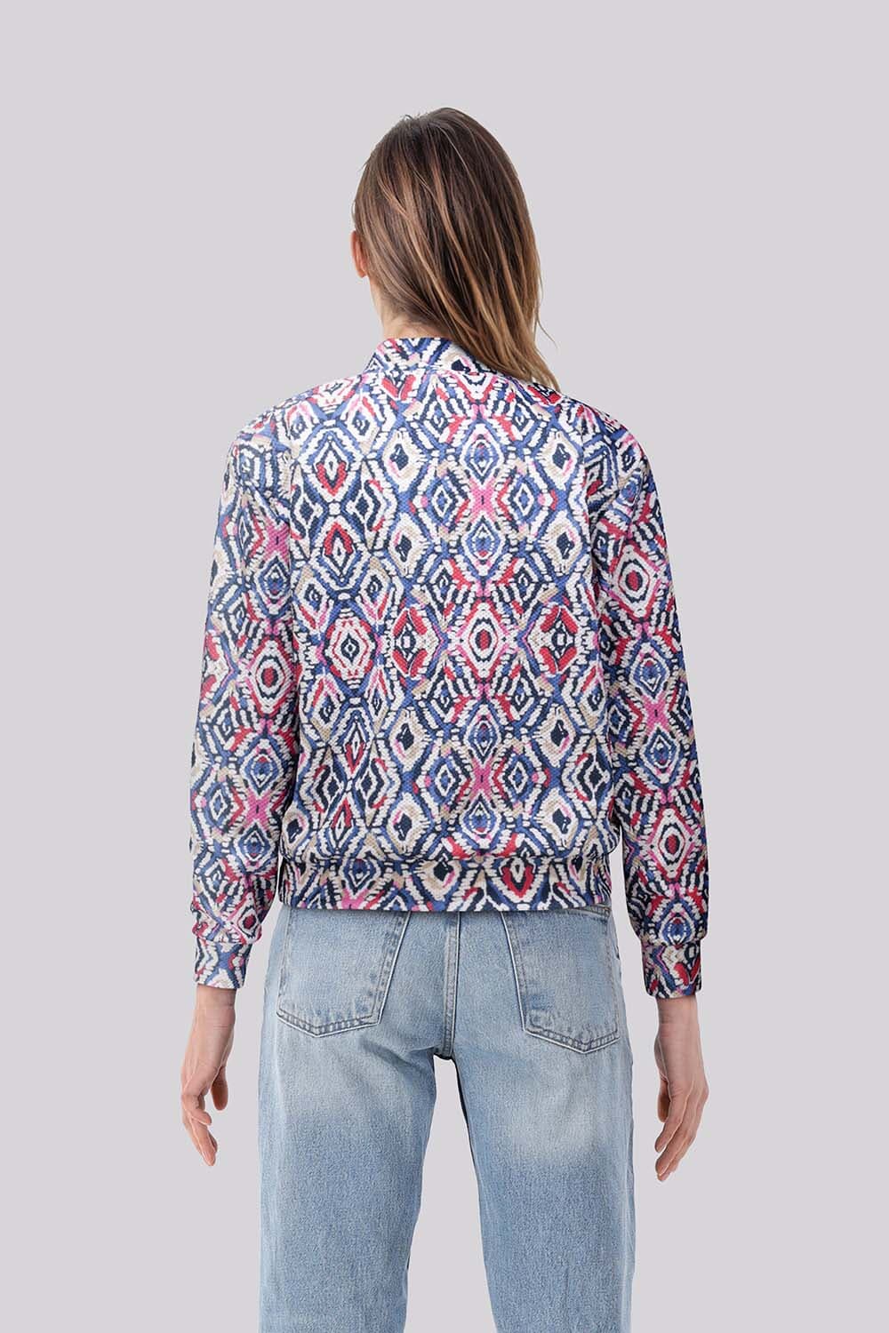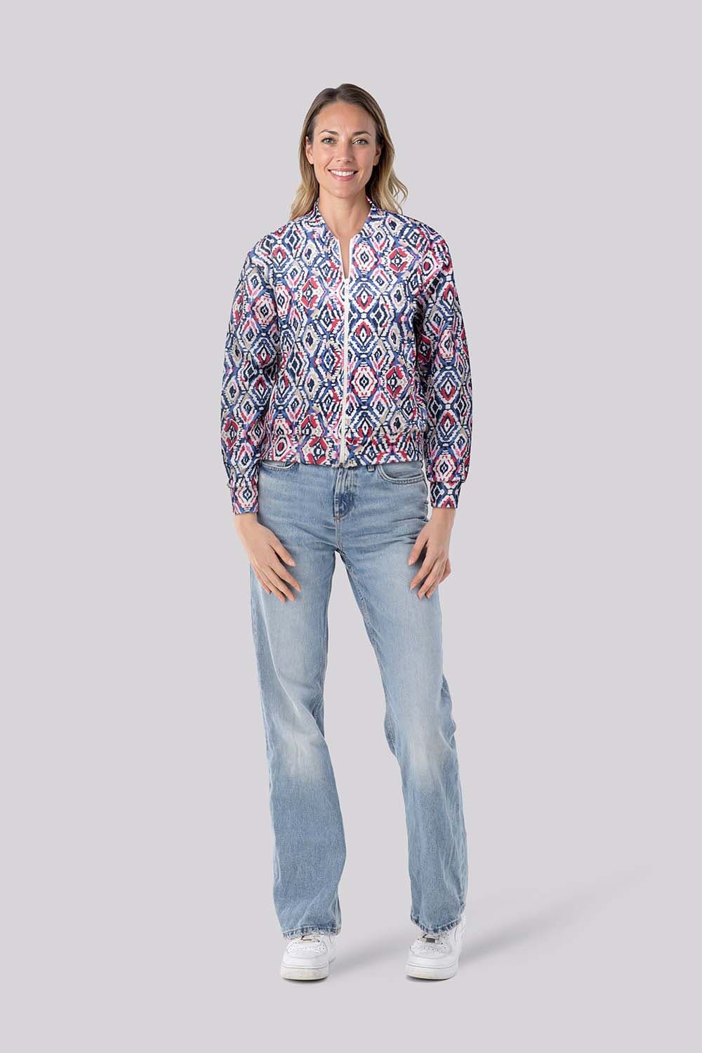 Vest van Enjoy met casual, bohemian bomberstijl en grafisch patroon. De opstaande kraag met rits sluit soepel, lange mouwen met ribgebreide boorden geven comfort, en zakken op de voorzijde bieden ruimte voor essentials. Regular pasvorm, licht gestructureerde stof en contrasterende bies langs de rits.