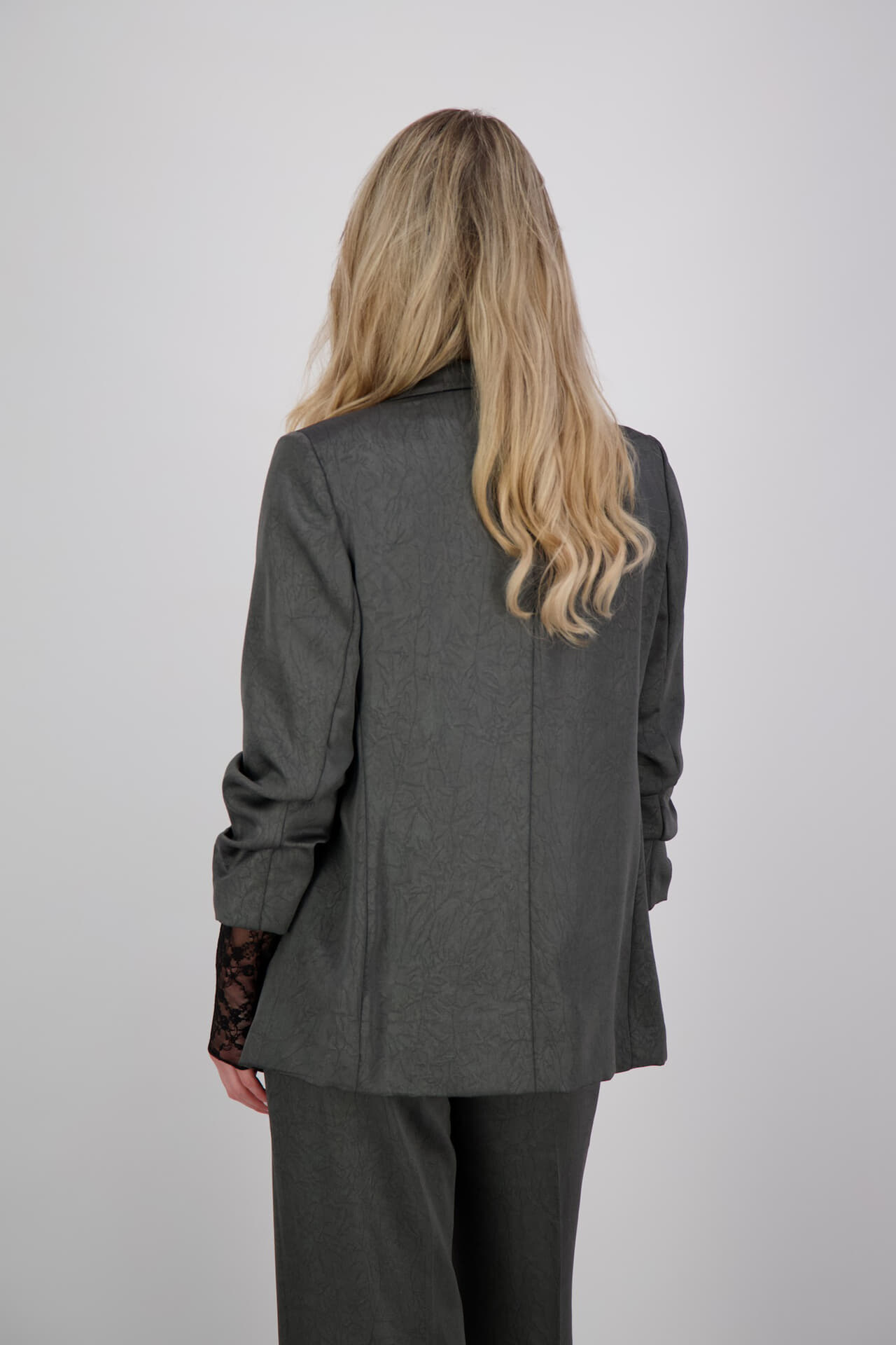 De Blazer Shimmer Crinkle van Esqualo is een stijlvolle tussenjas. Met een sophisticated stijl, spreidkraag en zakken op de voorzijde biedt deze blazer een nette uitstraling. De effen patroon en lange mouwen maken het een veelzijdige keuze voor verschillende gelegenheden.