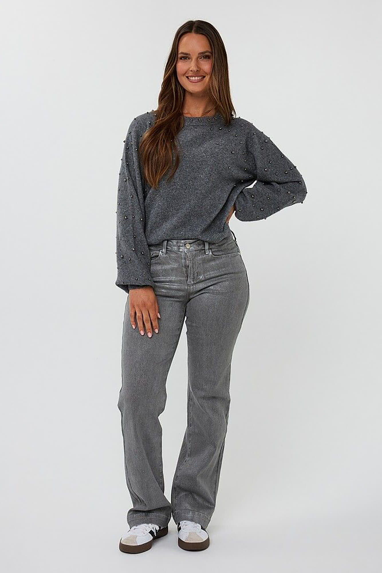 De Sweater Raglan Pearls van Esqualo is een stijlvolle en warme dames trui. Met zijn minimalistische stijl en regular pasvorm biedt deze effen trui comfort en elegantie. De lange mouwen zijn versierd met parels, waardoor het een trendy en uniek item is.