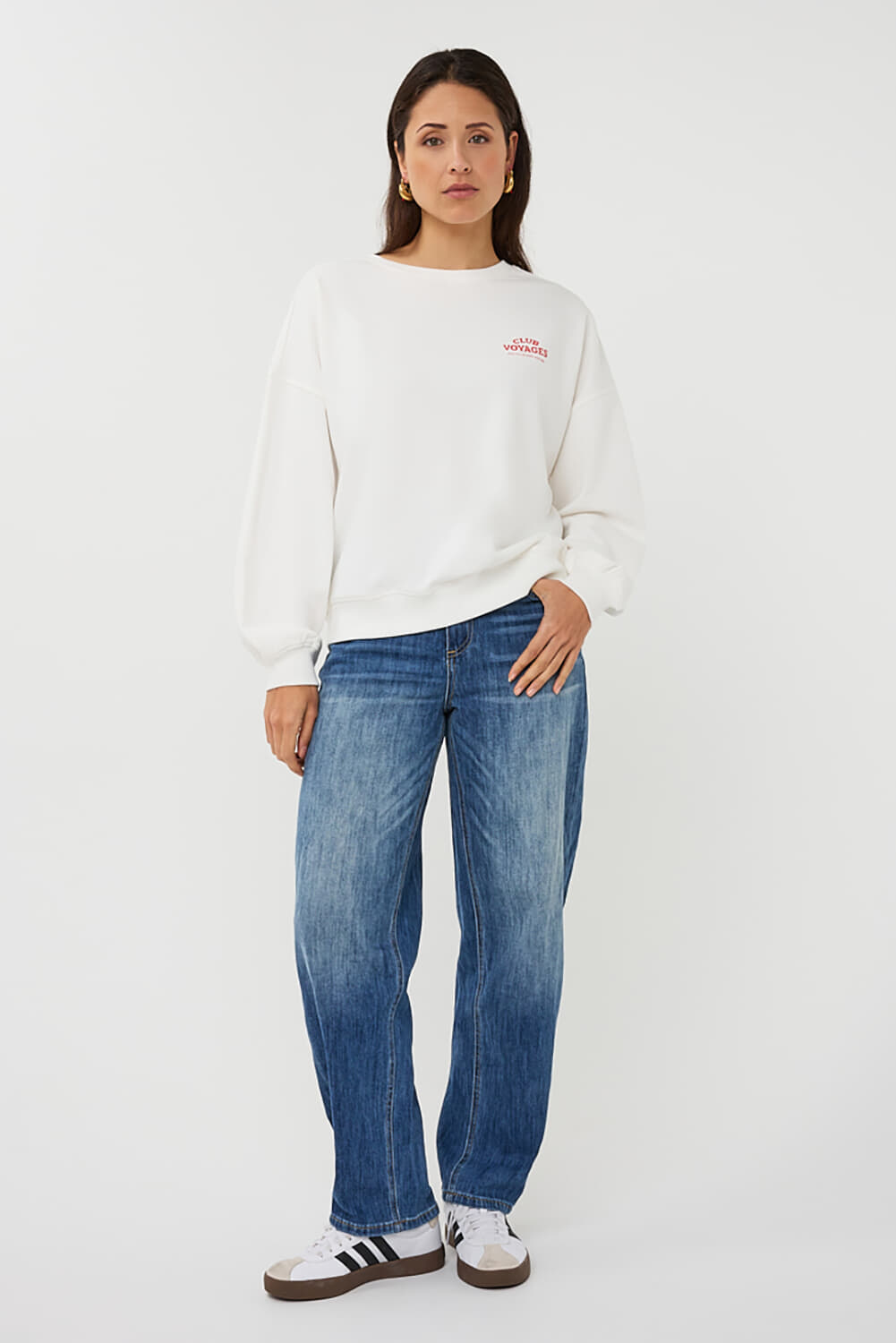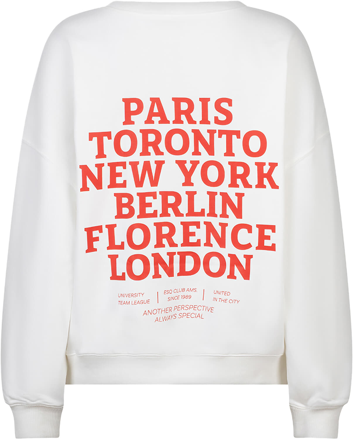 De Sweater 'cities' van Esqualo combineert stijl en comfort met een casual uitstraling. Deze oversized sweater heeft een ribgebreid mouwboord, lange mouwen en een ronde halslijn. Het opvallende logopatroon geeft een speelse twist aan deze modieuze sweater, perfect voor elke gelegenheid.