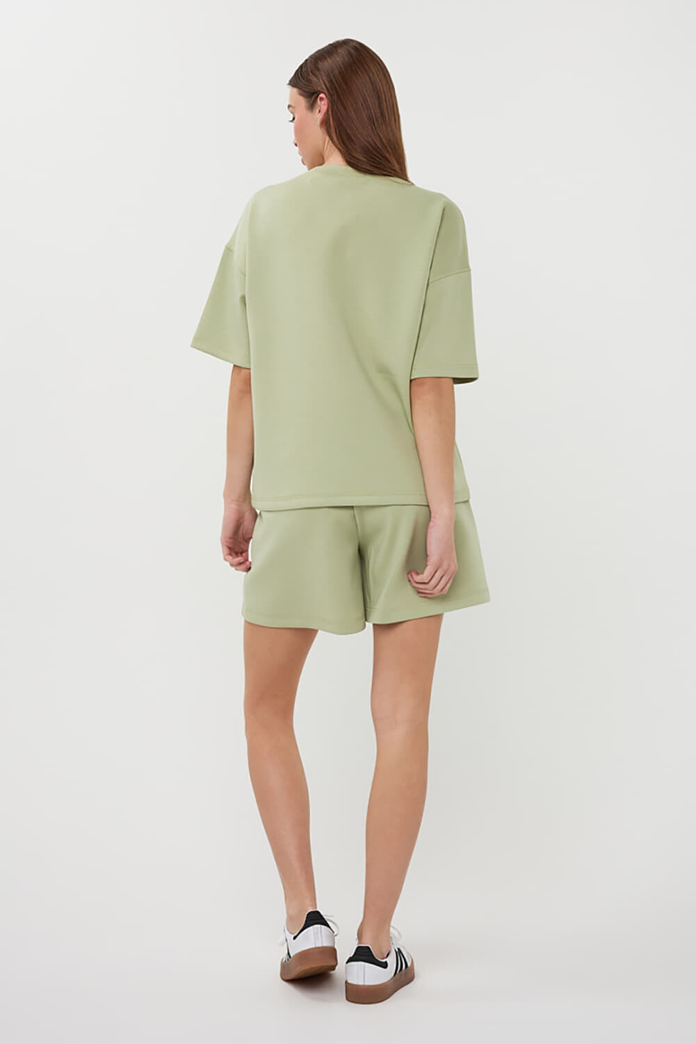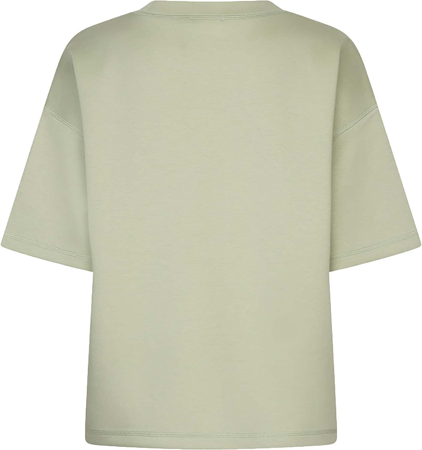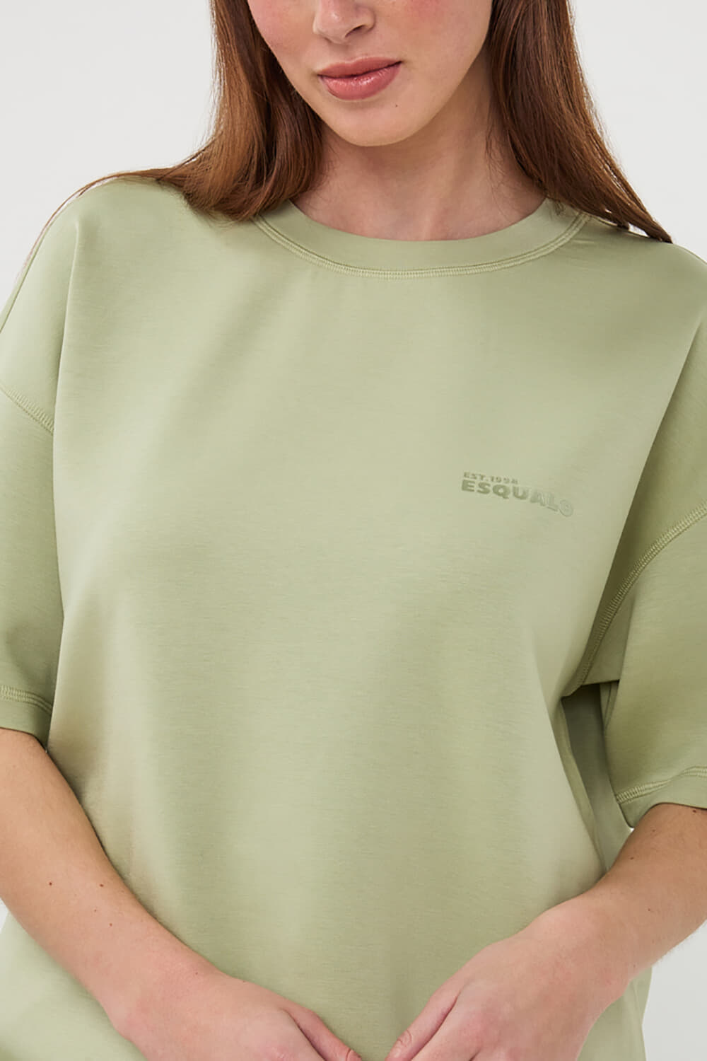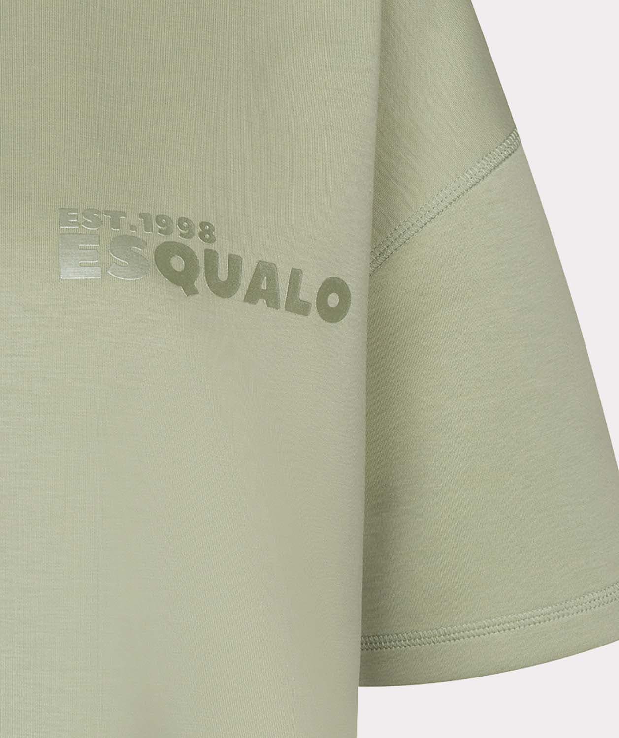 T-shirt top mouwloos van Esqualo met ronde hals, korte mouw en een losse, rechte pasvorm. De effen stof heeft een subtiel logo op de borst en zichtbare stiksels bij schouder en zoom. Combineer met een jeans of een minimalistische rok voor een casual set.