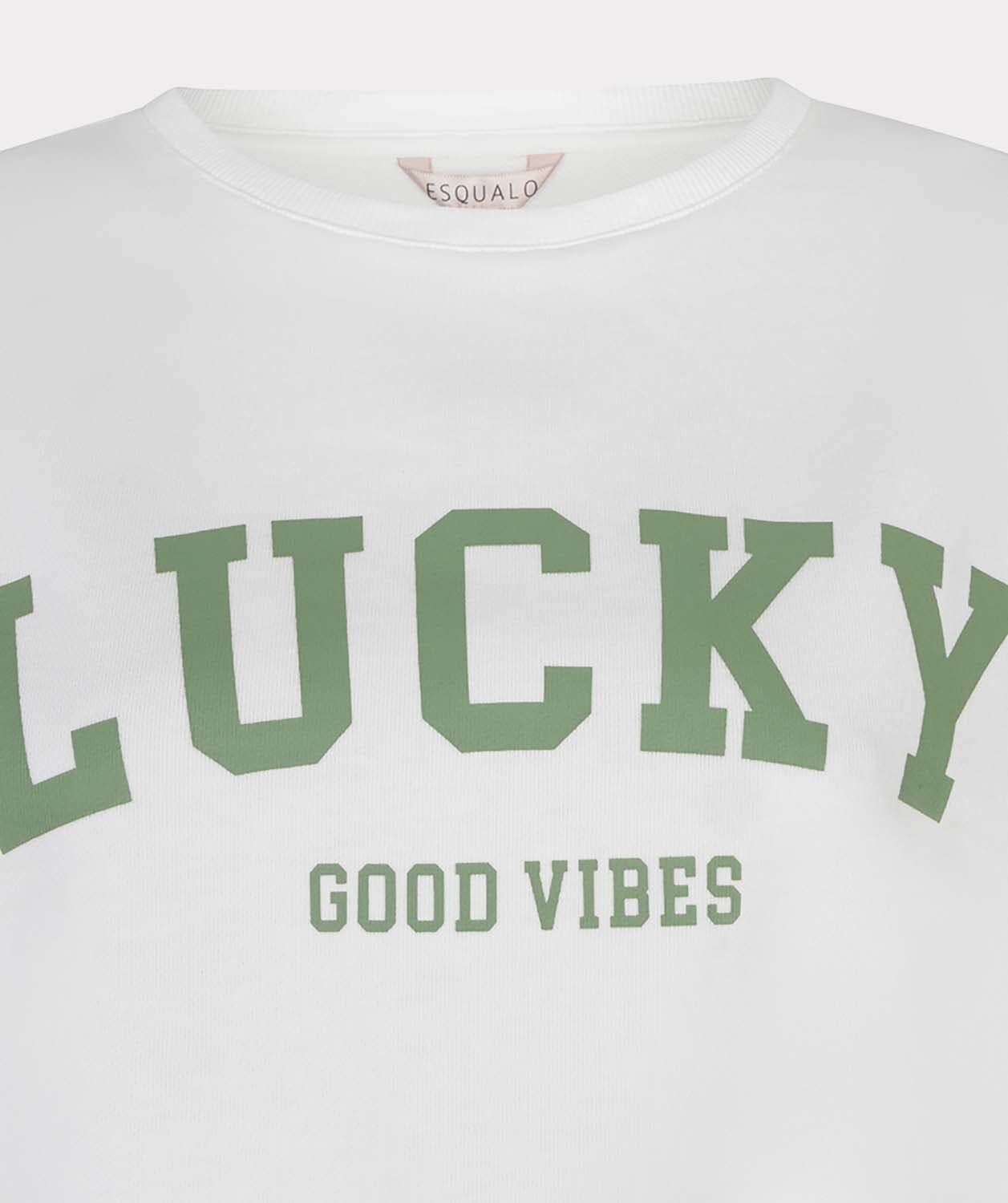 T-shirt Terry French van Esqualo is een casual top mouwloos met ronde hals en logo-opdruk Lucky Good Vibes. De ruime, rechte pasvorm en verlaagde schoudernaden geven een relaxte uitstraling. Draag met een short of jeans en voeg sneakers toe voor gemak.