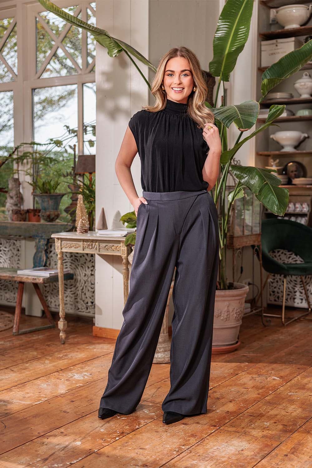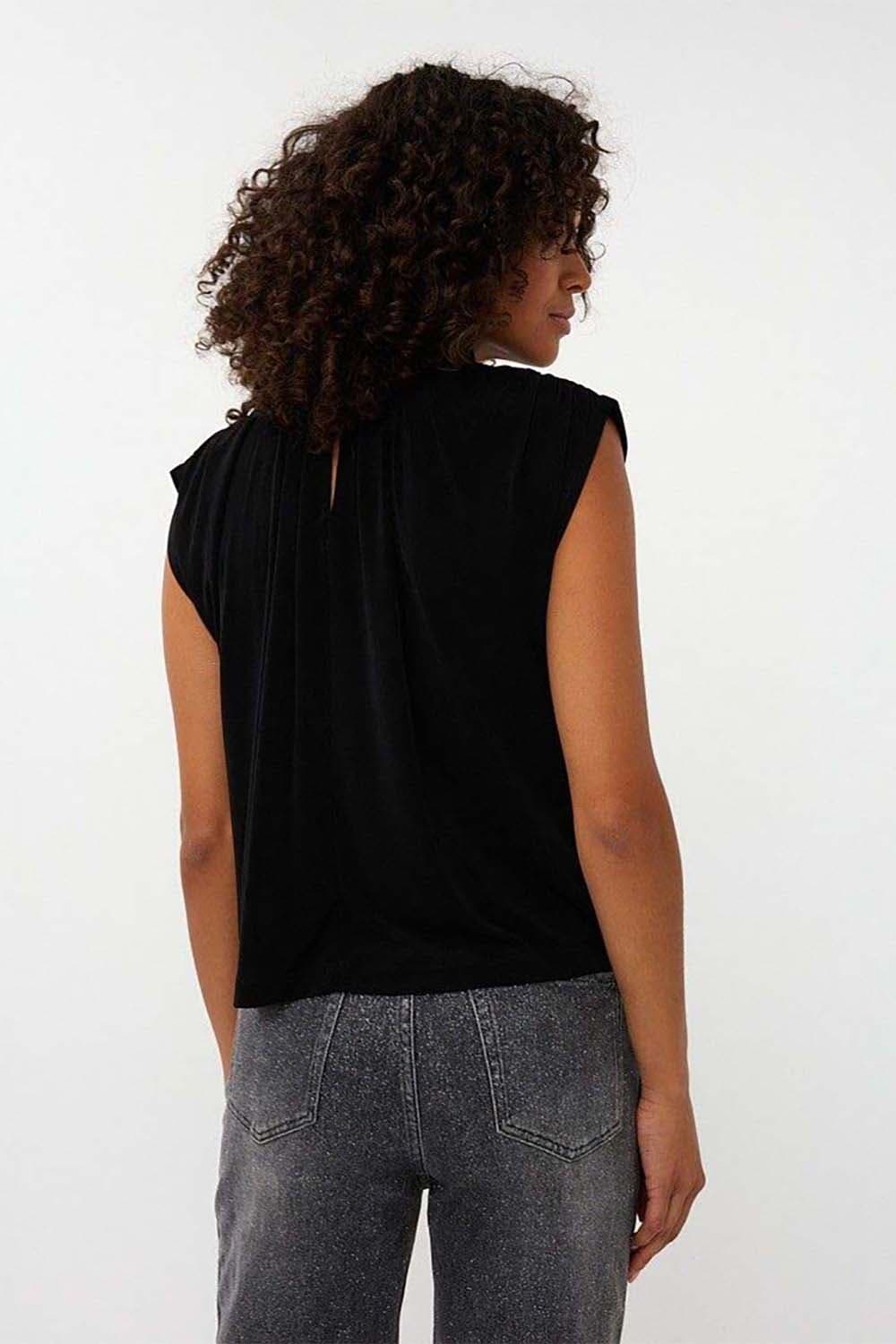 De Top Col Gathering van Esqualo is een stijlvolle dames top korte mouw. Het ontwerp is minimalistisch met een opstaande kraag en een slimfit pasvorm. De mouwloze top heeft een effen patroon en is perfect voor nette gelegenheden, straalt elegantie en eenvoud uit.