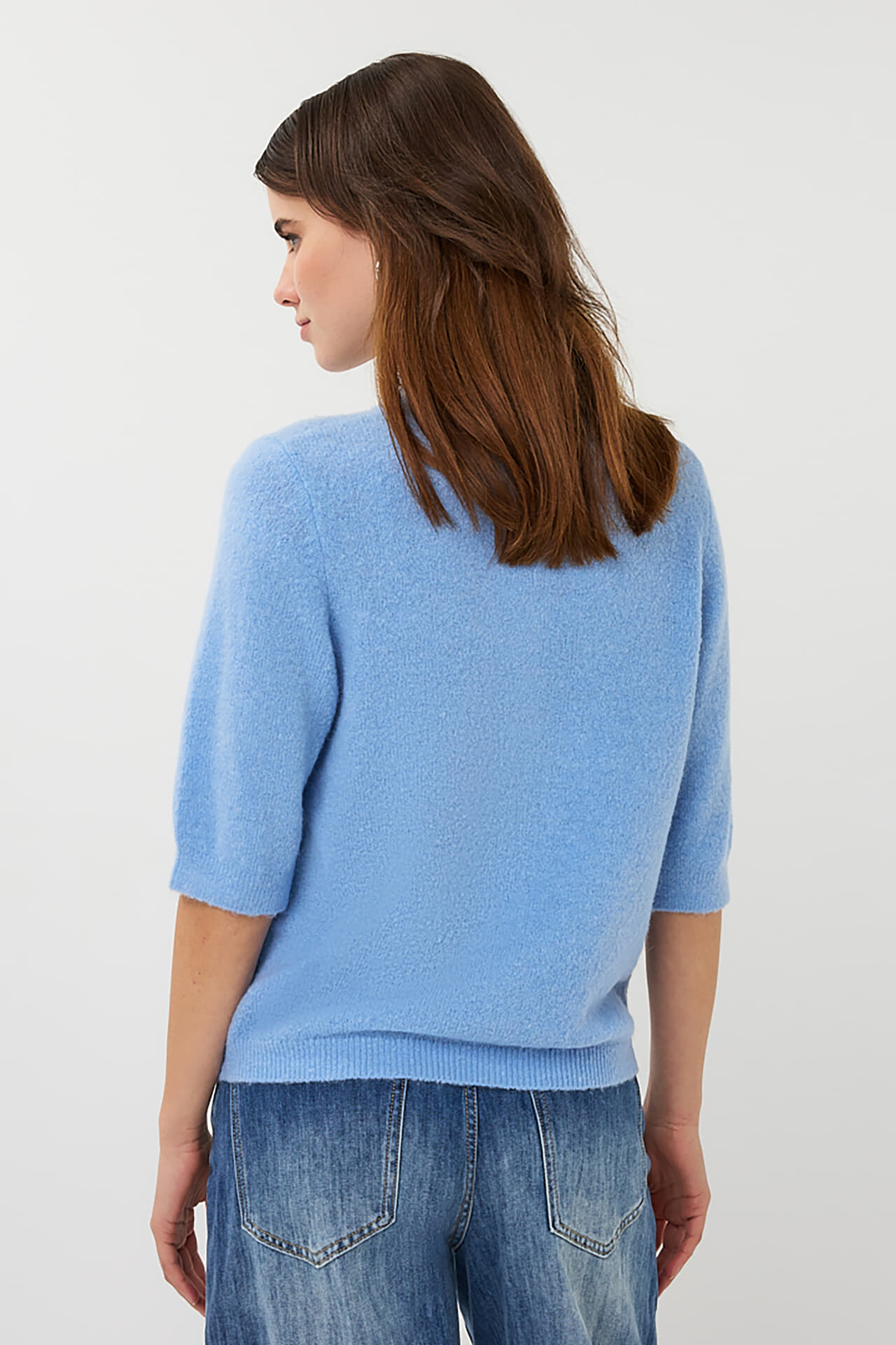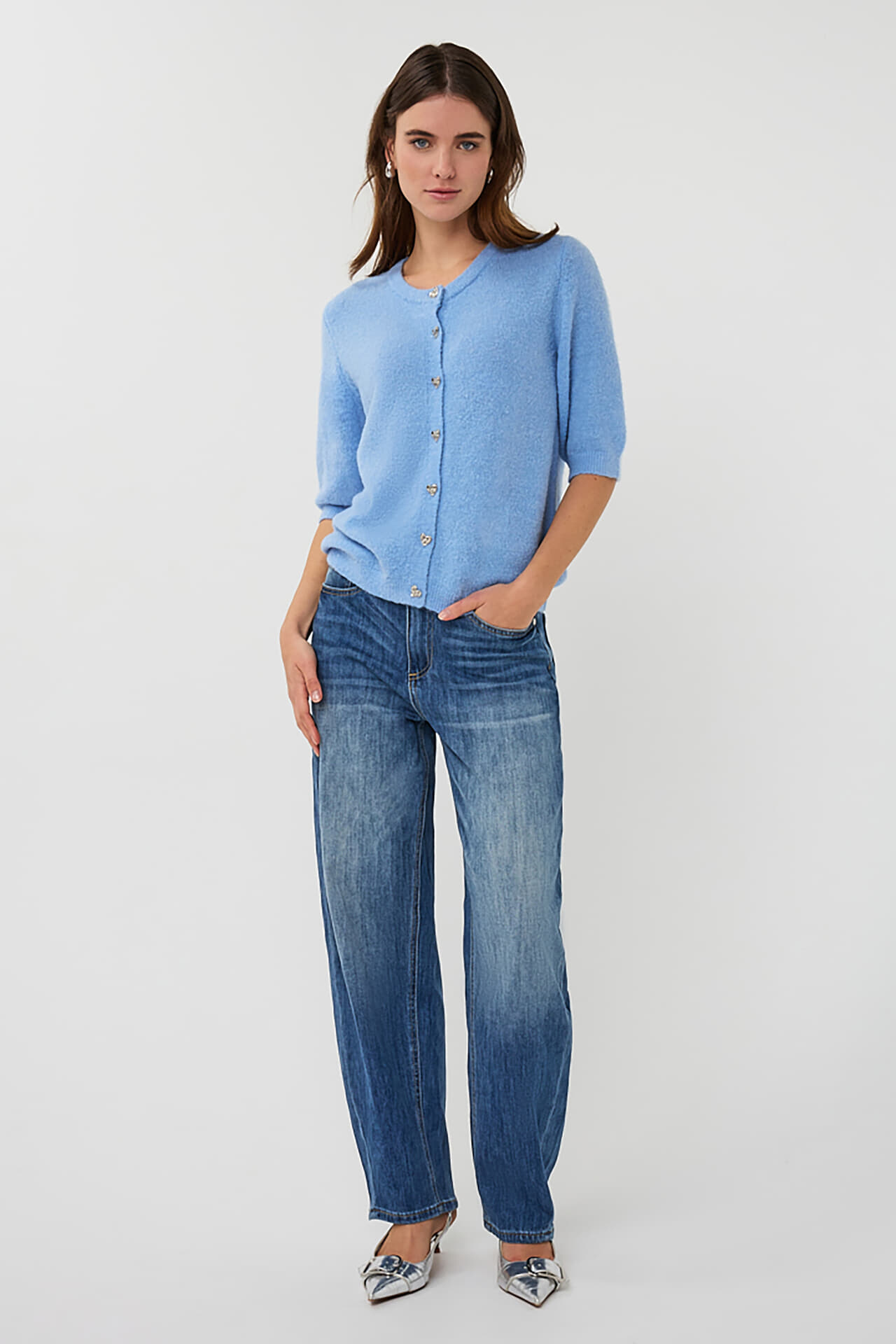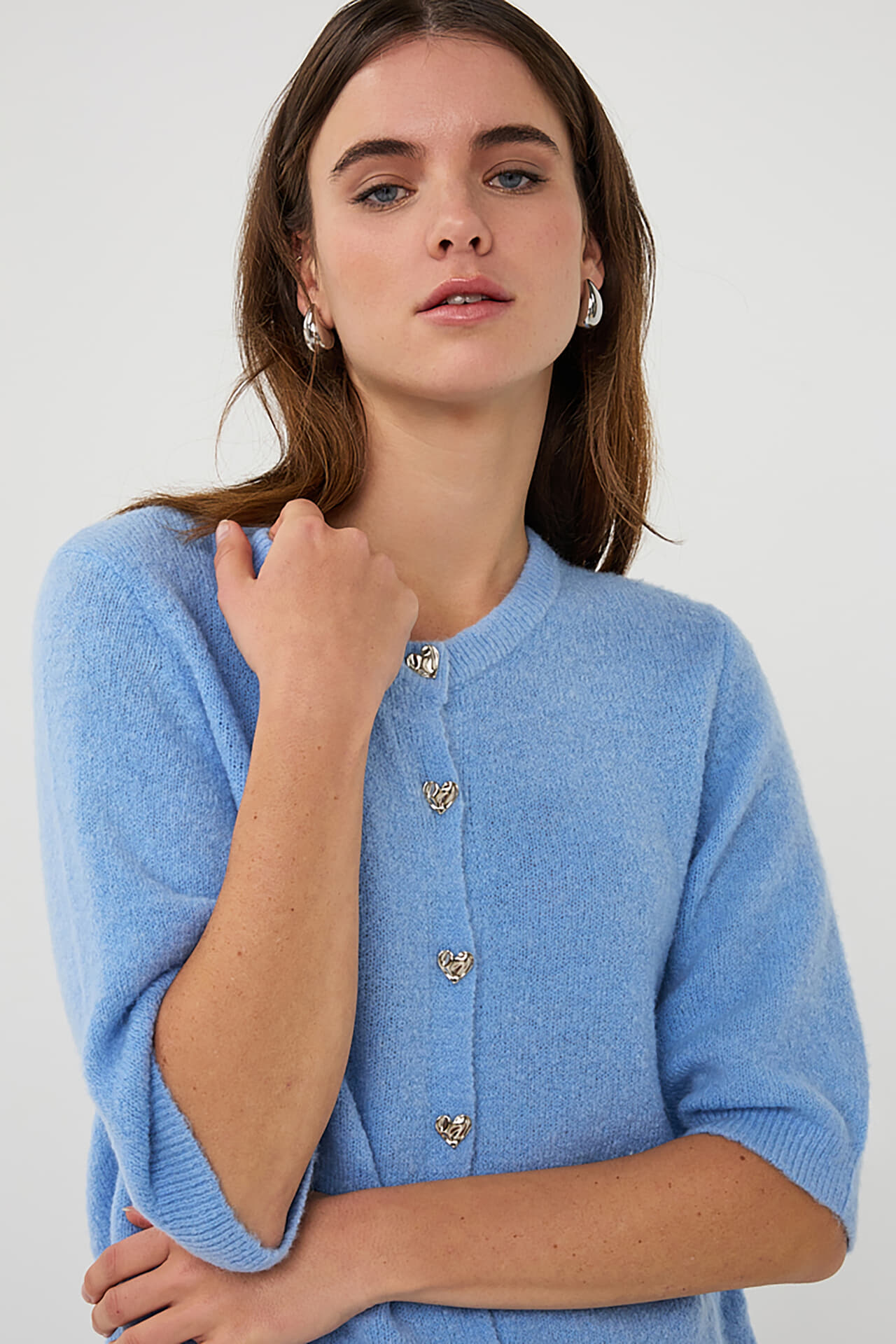 Vest Fancy Buttons van Esqualo is een stijlvol dames vest. Met een ronde halslijn en driekwart mouwen, biedt het een casual en tijdloze uitstraling. De unieke hartvormige knopen voegen een speels detail toe aan het effen ontwerp, perfect voor elke garderobe.