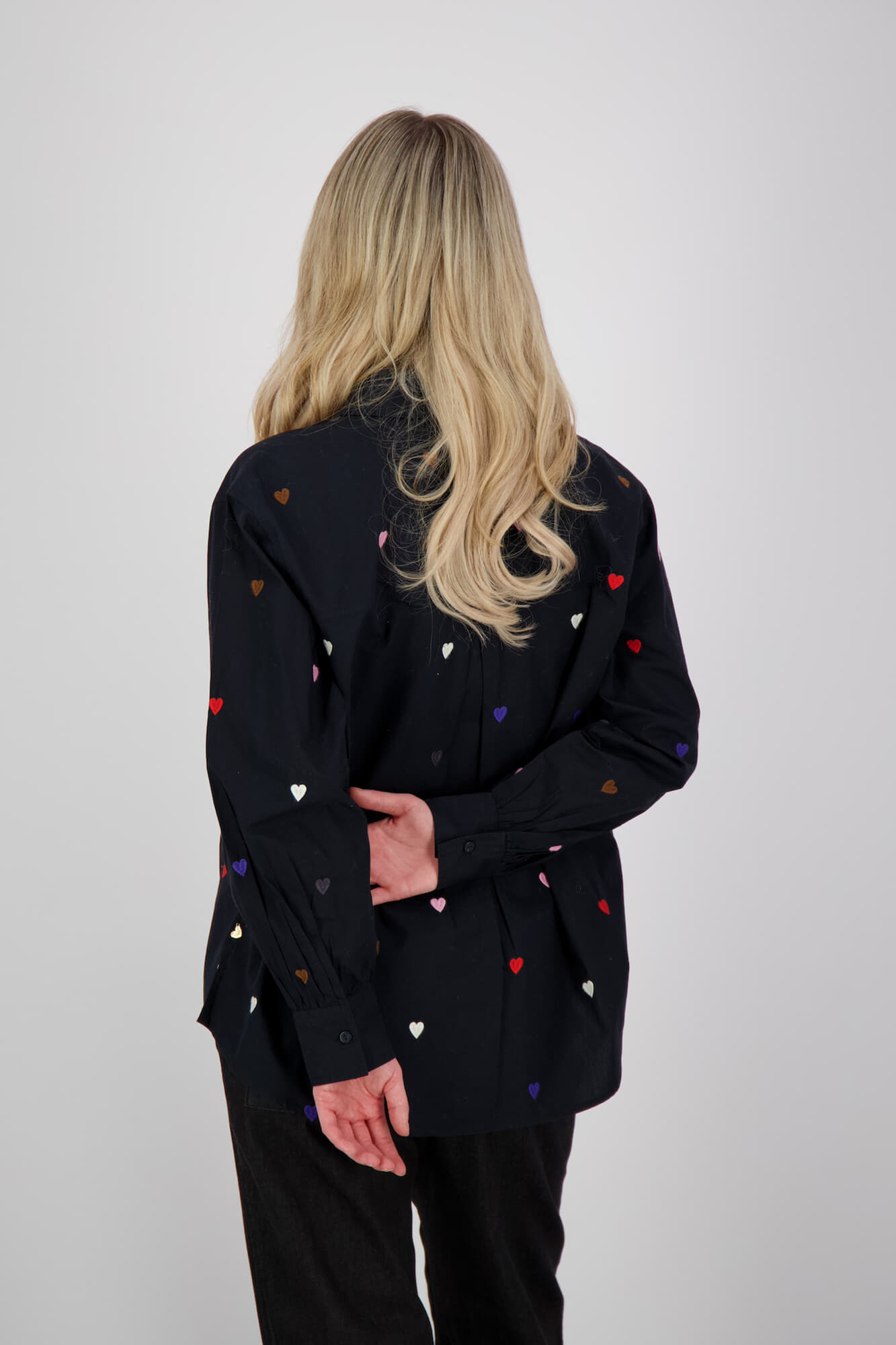 De Blouse Alena van Fabienne Chapot, een casual blouse, is een speelse keuze met kleurrijke hartjes en een comfortabele pasvorm. Uitgerust met een spreidkraag, lange mouwen en manchetten met knopen, biedt deze blouse een vrolijke en toegankelijke stijl voor elke gelegenheid.
