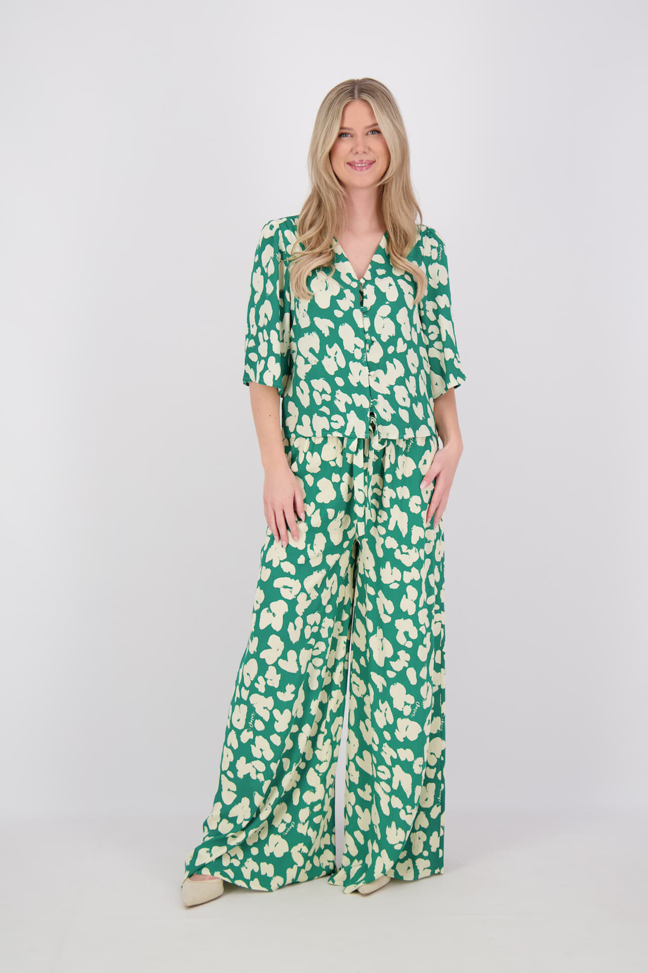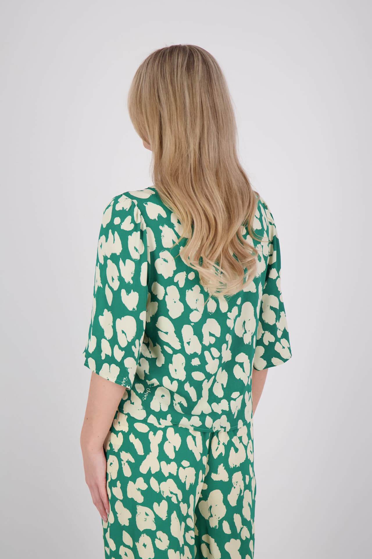 Blouse Starlet, blouse, van Fabienne Chapot heeft een casual uitstraling met een opvallend grafisch patroon in groen en wit. De soepele stof valt prettig en geeft bewegingsvrijheid, terwijl de all-over print zorgt voor een frisse, eigentijdse touch. Combineert makkelijk met jeans of een nette broek.