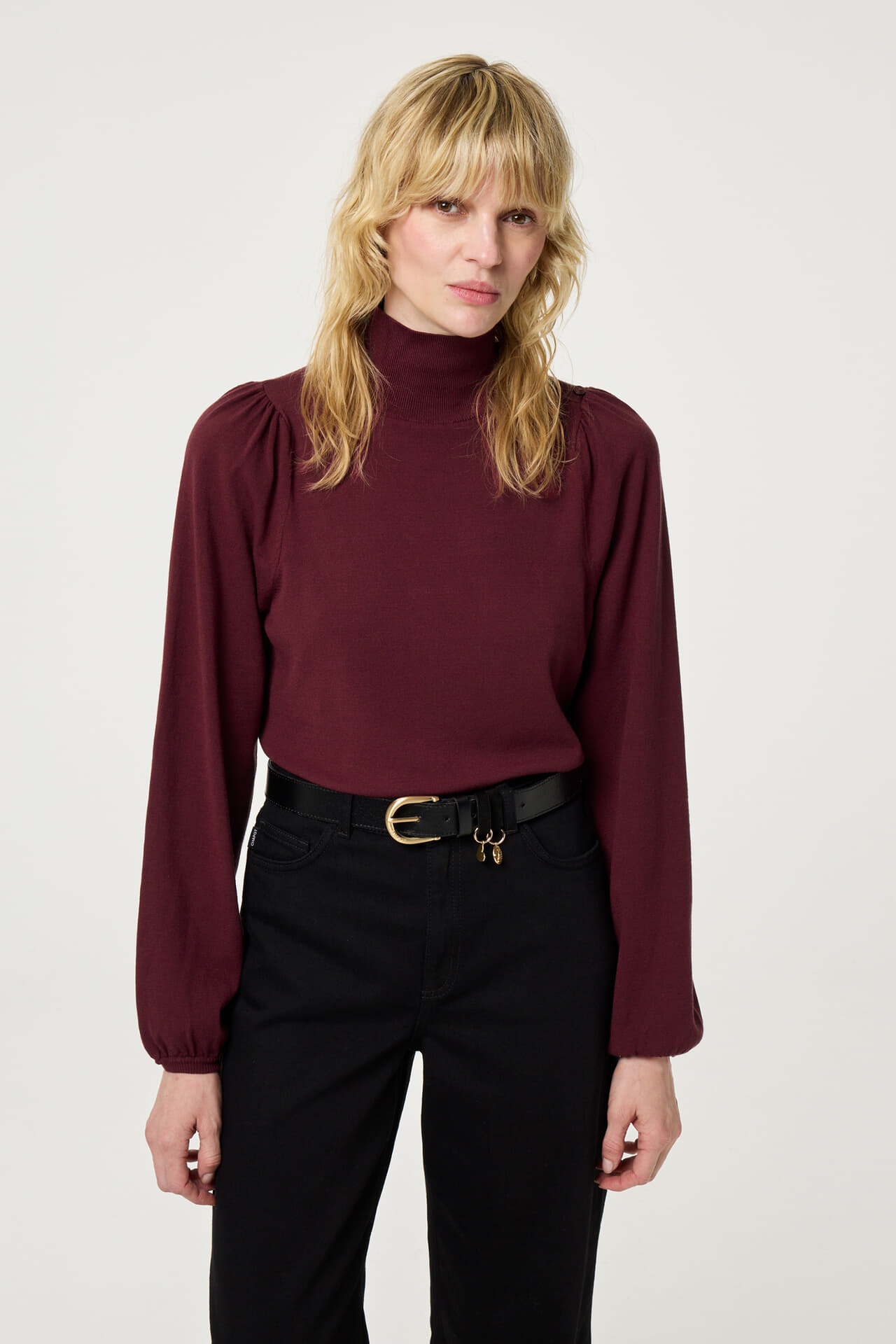 De Pullover Molly van Fabienne Chapot, een stijlvolle dames trui, heeft een elegante col en lange mouwen. Deze effen trui combineert comfort met een modieuze uitstraling, perfect voor elke gelegenheid. De warme kleur en zachte stof maken het een must-have in je garderobe.