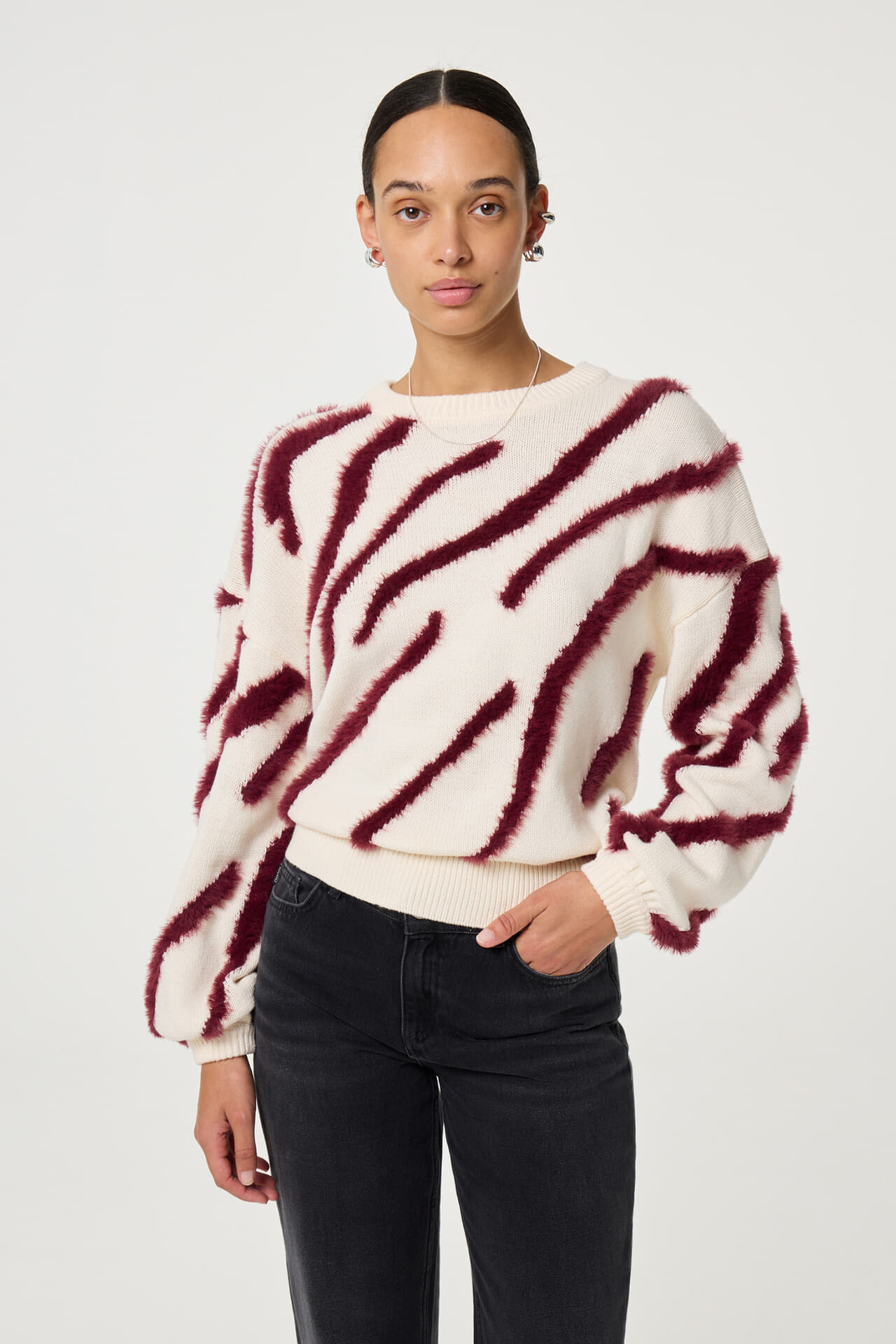 De Pullover Zebra van Fabienne Chapot is een casual dames trui met een ronde hals en oversized pasvorm. De lange mouwen en dierenprint geven een modieus tintje. De trui is stijlvol en warm, perfect voor een ontspannen en stijlvolle uitstraling.