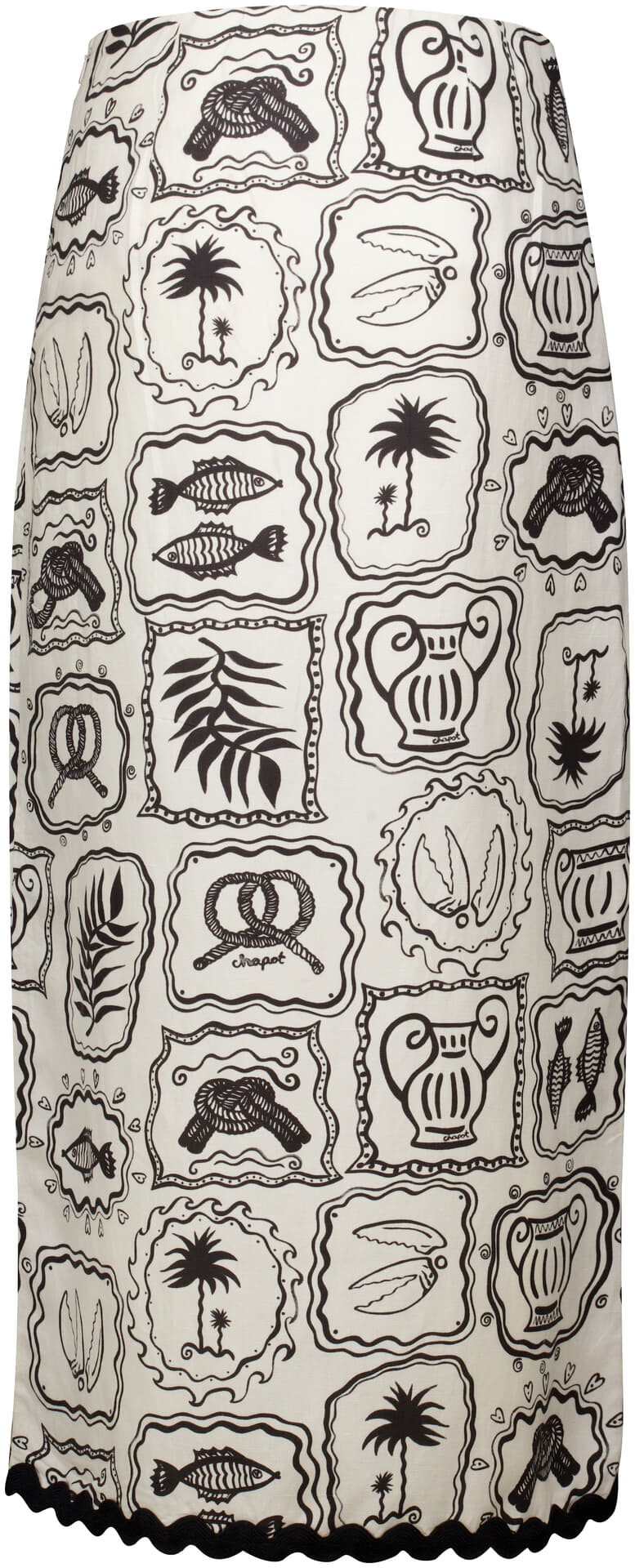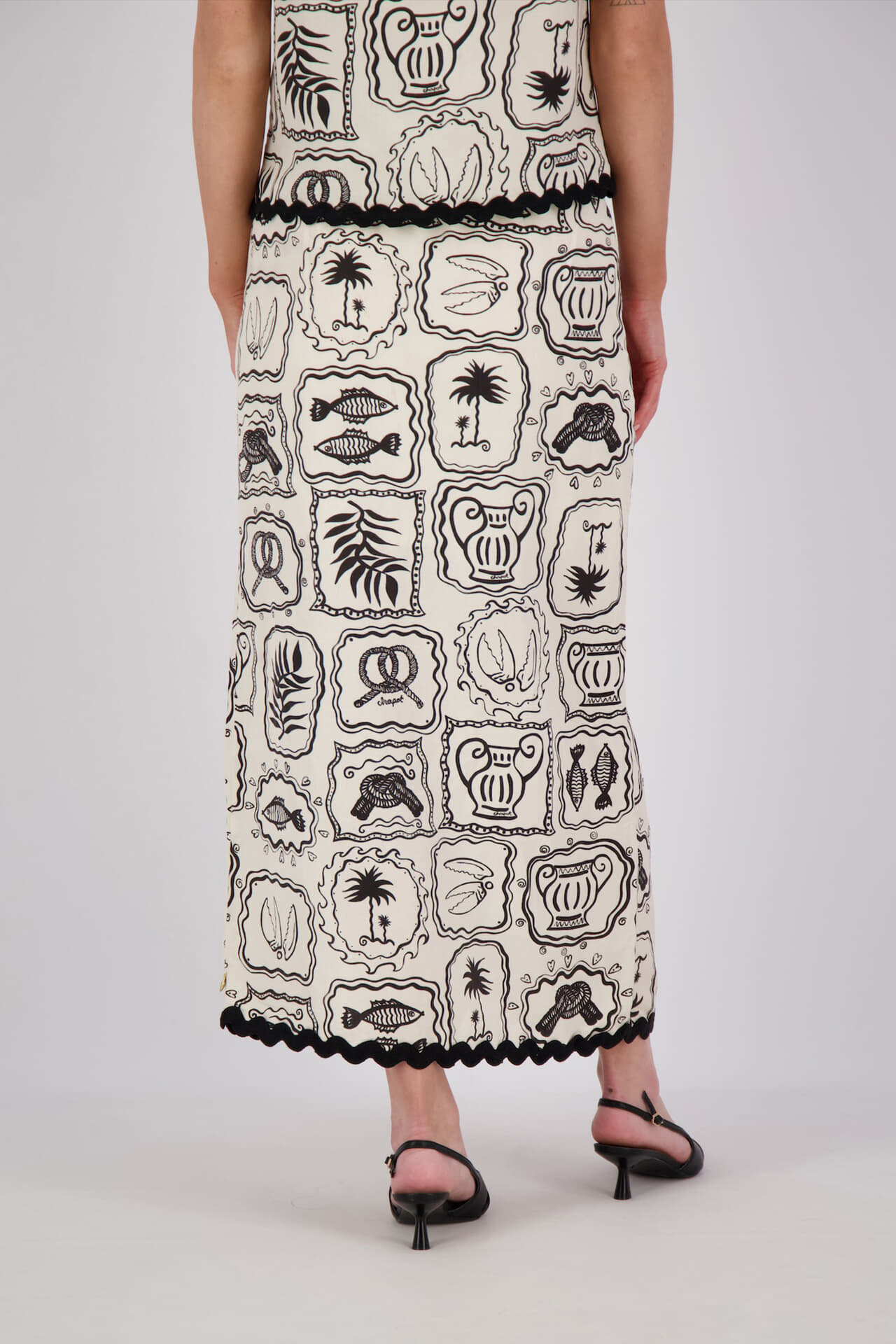 De Rok Tila van Fabienne Chapot, een bohemien dames rokken, heeft een uniek grafisch patroon. Deze midi rok combineert stijl met comfort, perfect voor elke gelegenheid. De speelse patronen en elegante snit maken het een veelzijdige toevoeging aan de garderobe.