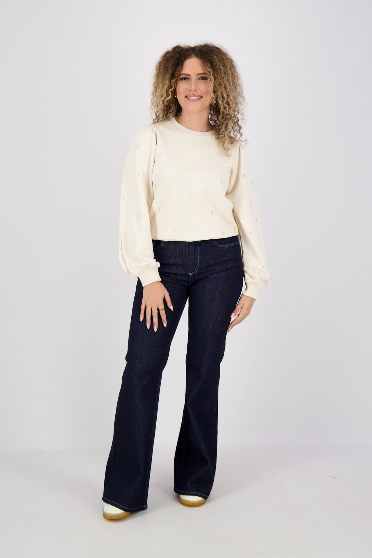 Sweater Dina van Fabienne Chapot biedt een casual stijl met ribgebreide mouwboorden, een comfortabele pasvorm en een ronde halslijn. Deze dames sweater heeft lange mouwen en is perfect voor alledaagse gelegenheden, met subtiele details voor een stijlvolle uitstraling.