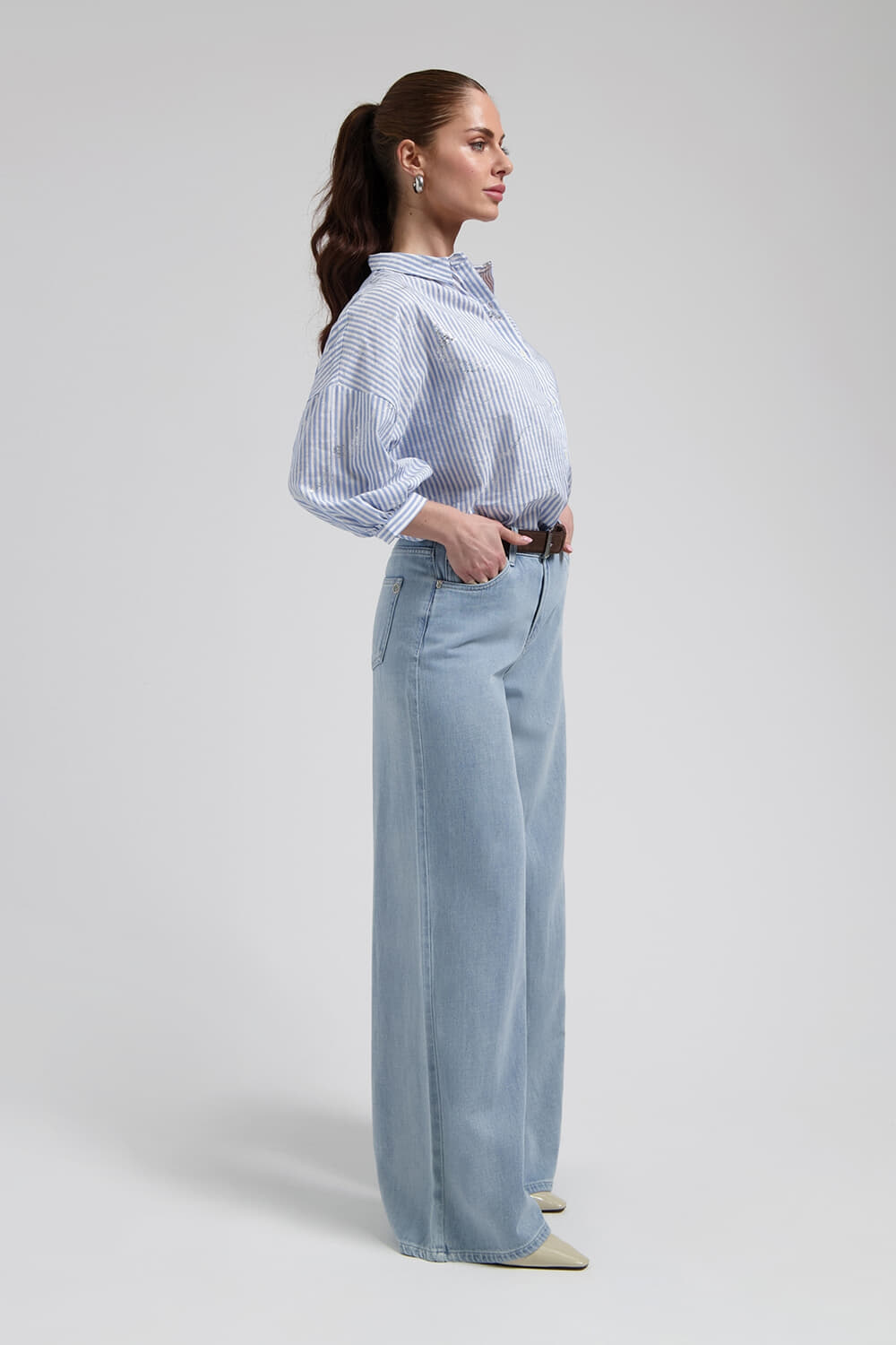 Blouse Cath van Florez is een casual dames blouse met een losse pasvorm. Het heeft een opstaande kraag en een knoopsluiting, ideaal voor een ontspannen gelegenheid. De 3-kwart mouwen en het gestreepte patroon geven een stijlvolle en frisse uitstraling.