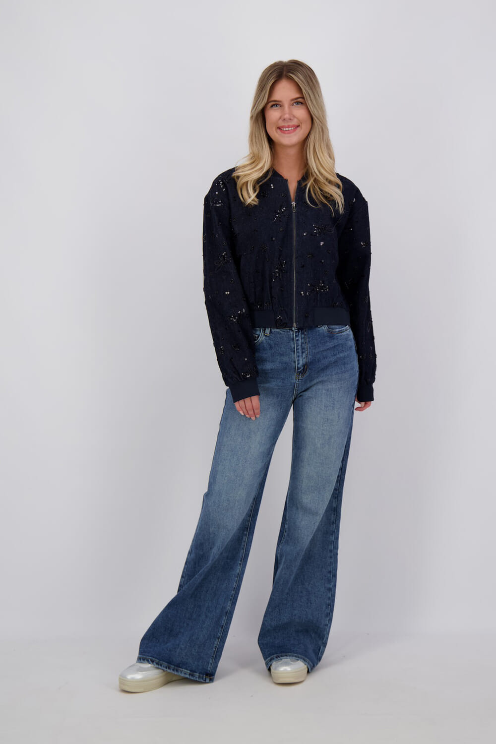 Jeans Ana van Florez biedt een stijlvolle casual uitstraling. Deze dames jeans heeft een normale taille en is voorzien van voor- en achterzakken. Met een flared pasvorm en effen patroon is het een veelzijdige keuze voor elke garderobe. Ontdek het comfort van regular fit.