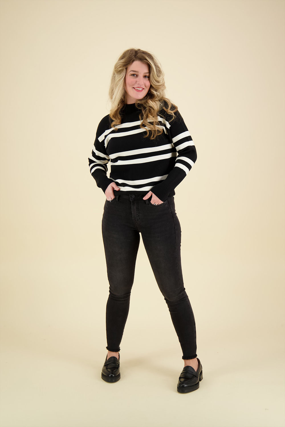 Afmetingen Sylvana is 169 cm lang en draagt maat 27