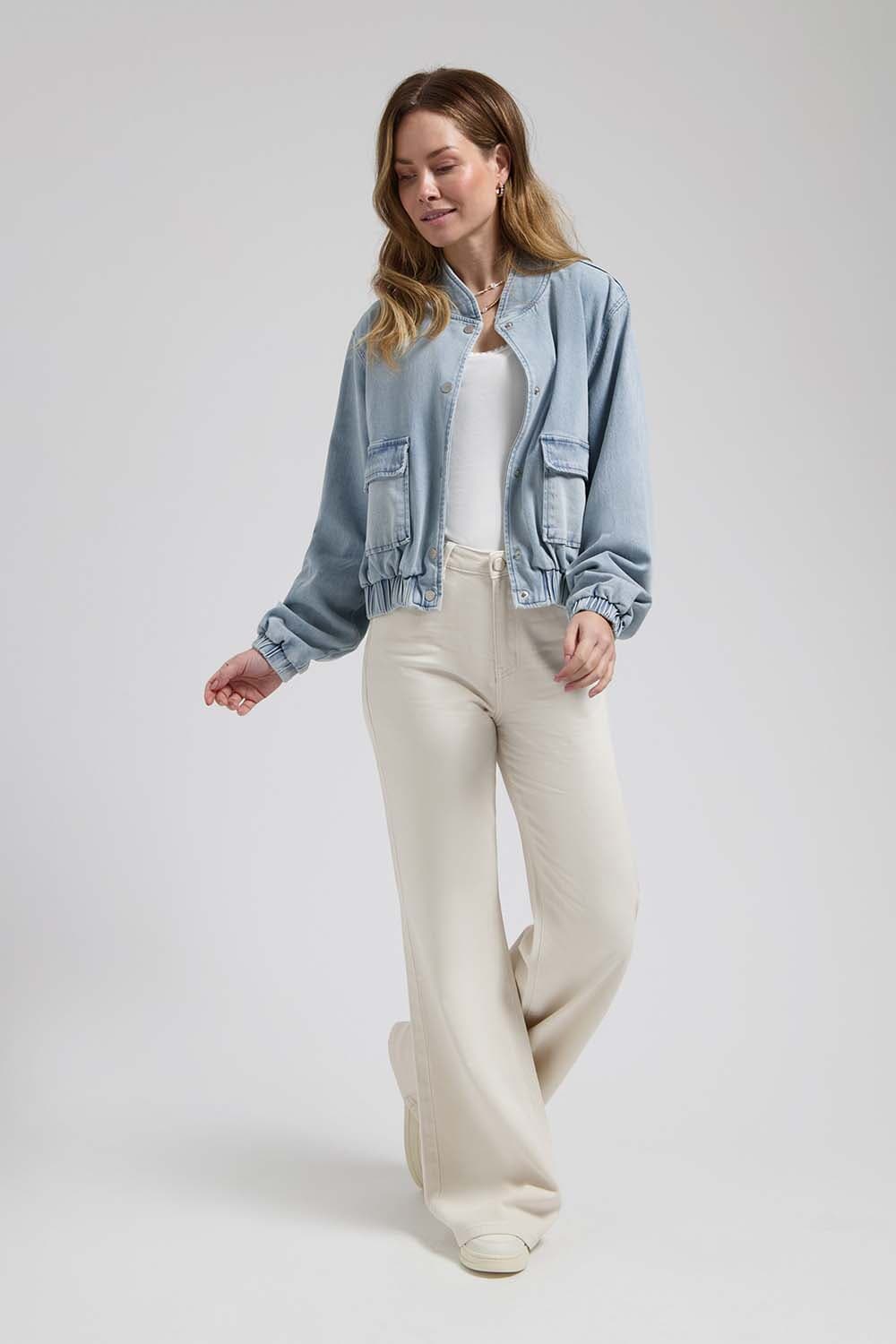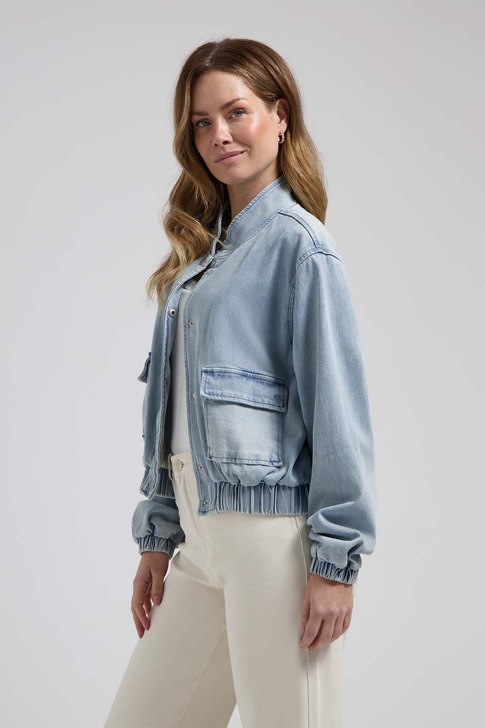De Spijkerjas Kyra van Florez is een stijlvolle casual spijkerjas met een opstaande kraag en lange mouwen. Ideaal voor een ontspannen en trendy uitstraling, met functionele zakken die het praktische aspect versterken. Deze dames spijkerjas combineert comfort met modieuze flair.