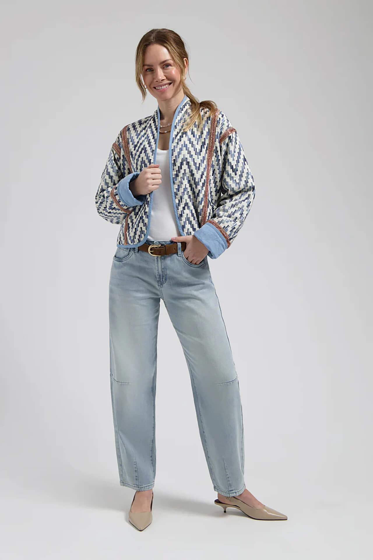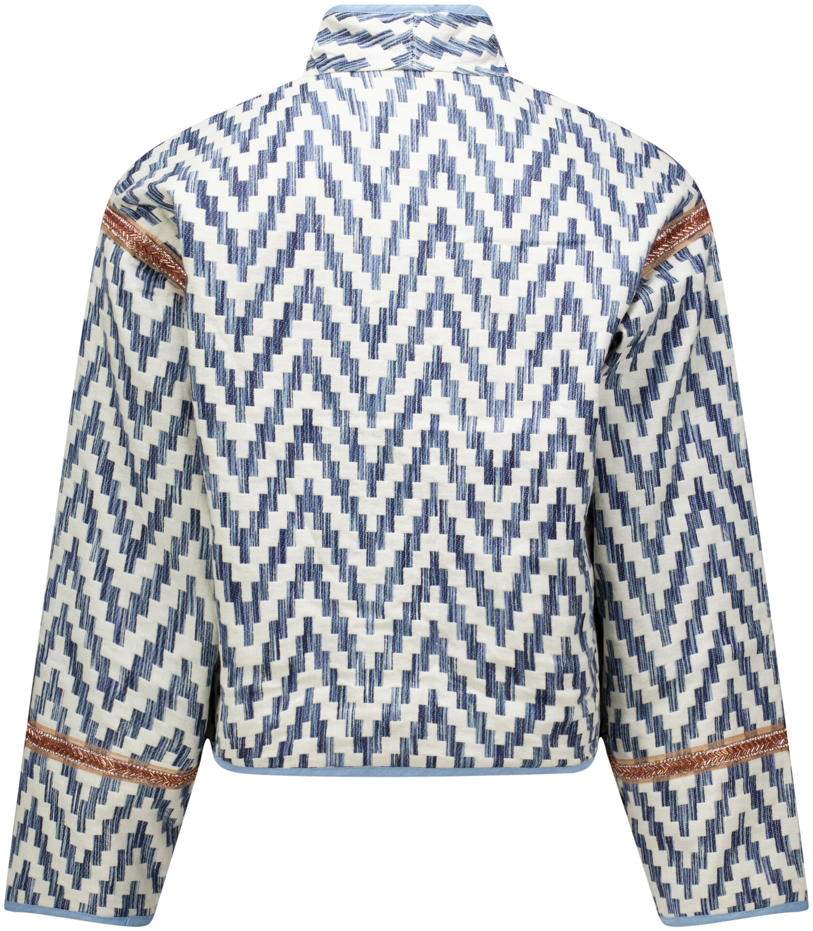 Vest Marilena van Florez is een stijlvol dames vest met een opstaande kraag en lange mouwen. Het heeft een cropped fit en een grafisch patroon, perfect voor een casual look. Ideaal voor elke gelegenheid, combineert dit gewatteerde vest comfort met mode.