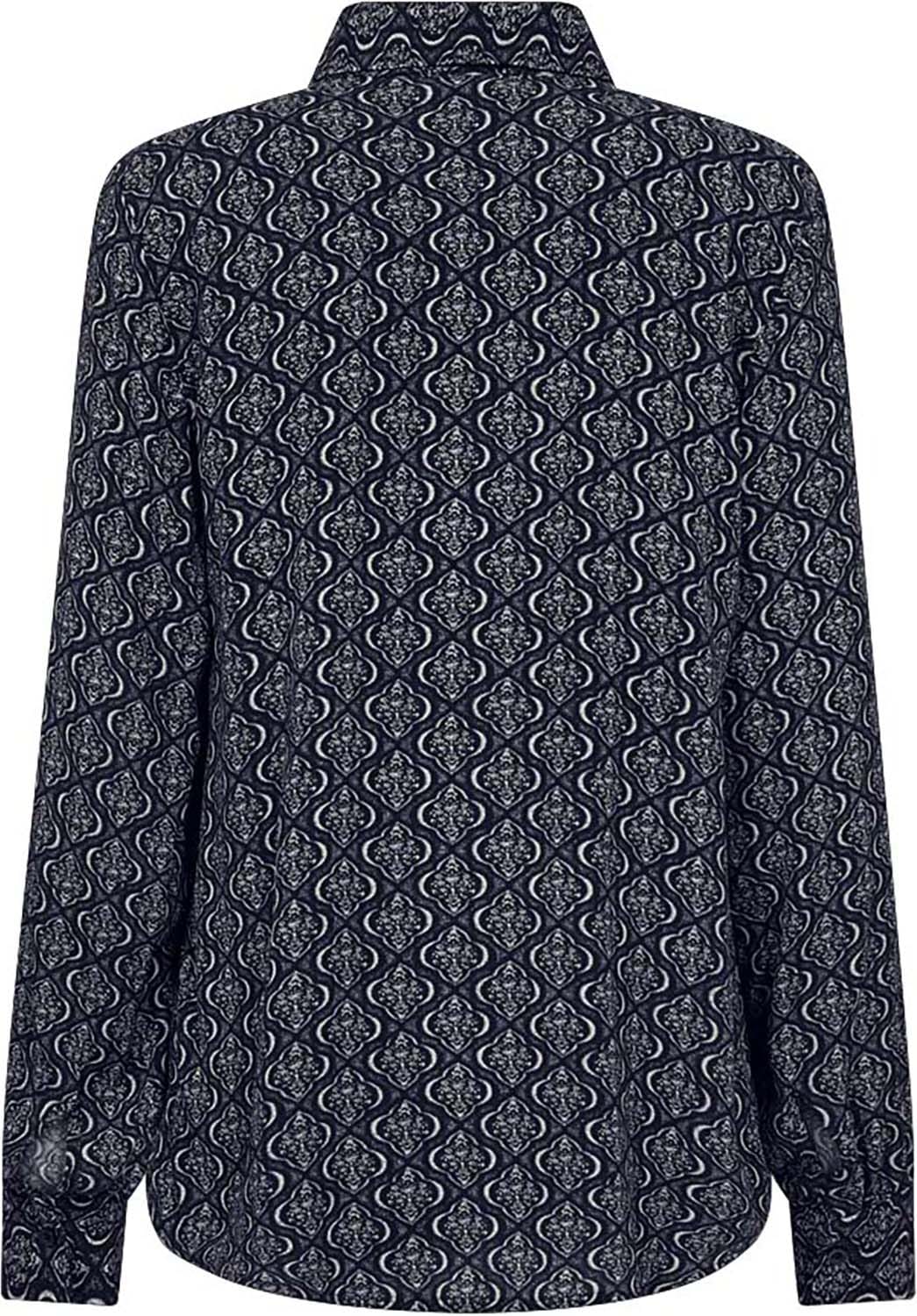 De Blouse Lovy van Freequent is een stijlvolle bohemian blouse met lange mouwen en een kent kraag. De all-over print en knoopsluiting geven het een unieke uitstraling. Perfect voor elke gelegenheid, dit kledingstuk combineert comfort met mode in een prachtig ontwerp.