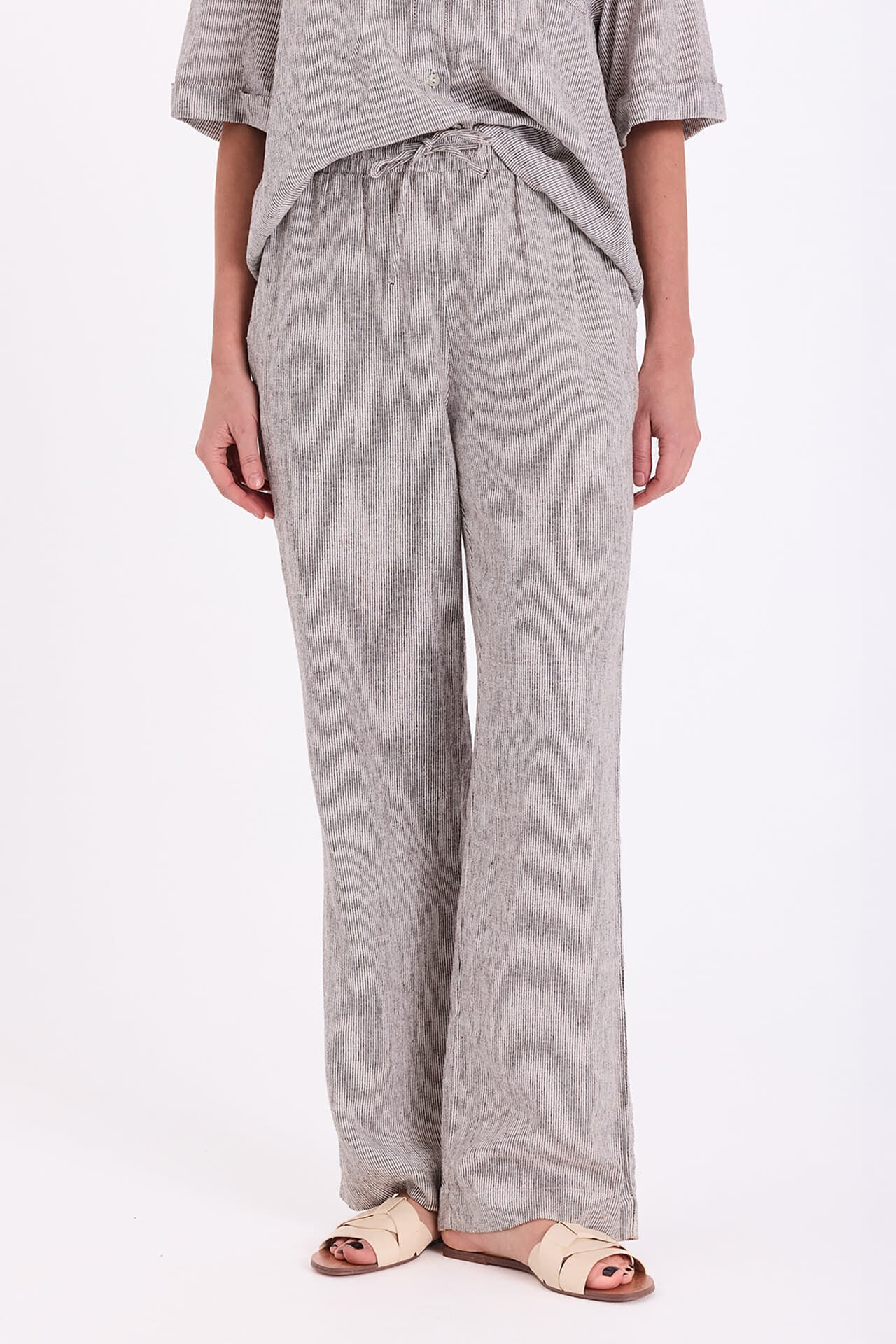 Broek lava van Freequent heeft een casual, minimalistische uitstraling met een effen dessin. De elastische taille met strikkoord zit comfortabel en geeft flexibiliteit. De wijde pijpen vallen soepel en bieden bewegingsruimte. Steek de handen in de zakken op de voorzijde. Combineer met een eenvoudige top en sneakers.