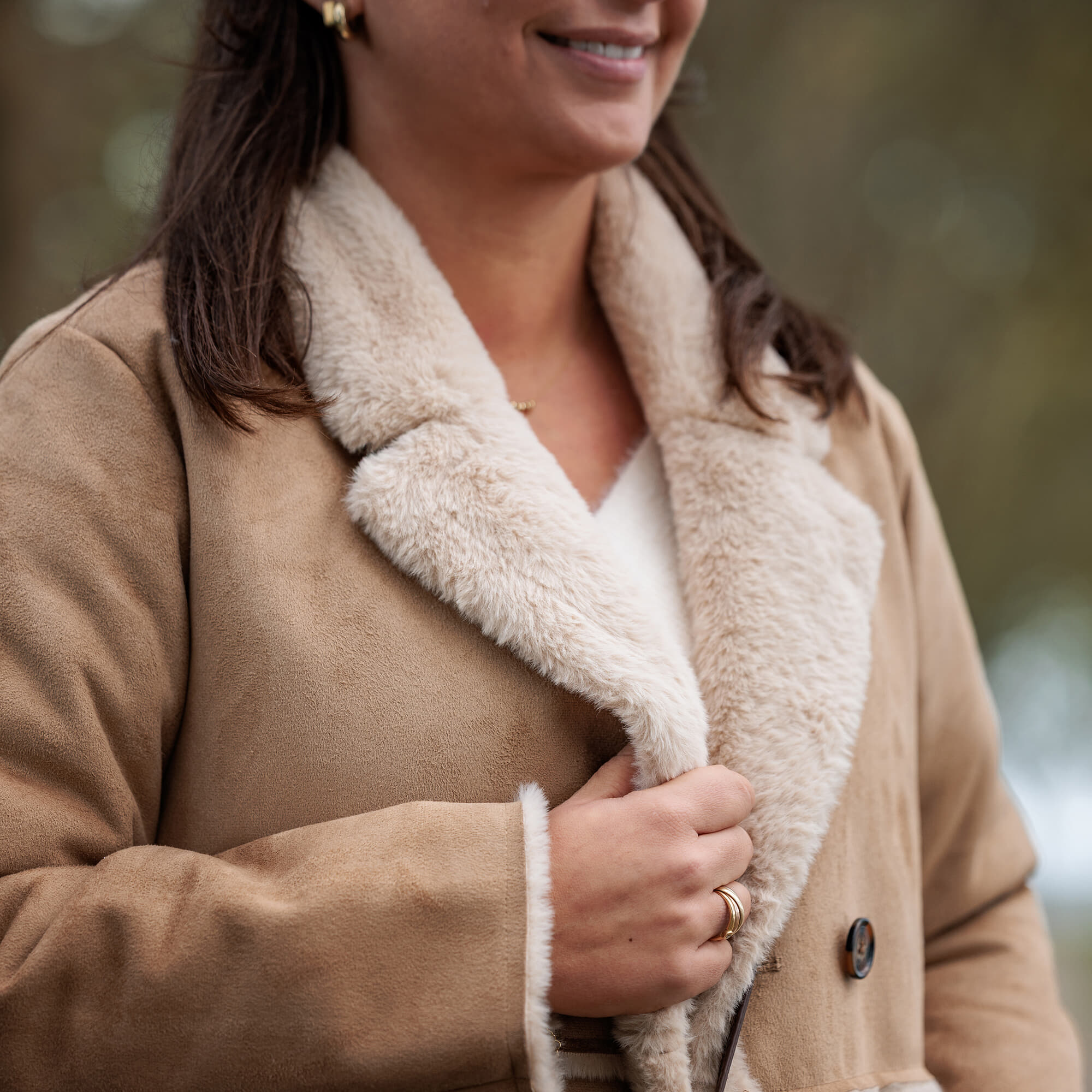 De Jas Lamse van Freequent is een dames wollen jas met een opstaande kraag en lange mouwen. Deze tussenjas straalt verfijning uit door de stijlvolle dubbele knopenrij en praktische zakken. De warme voering zorgt voor comfort, ideaal voor elk moment van de dag.