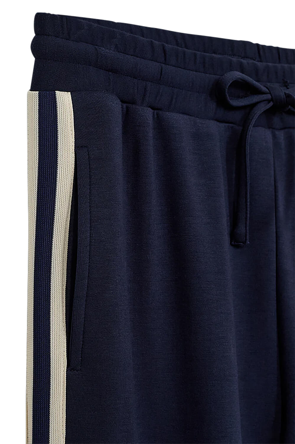 De Pantalon Lucinda van Freequent combineert een sportieve stijl met comfort. Deze losse fit broek heeft wijde pijpen en een elastische taille met koordsluiting. Het gestreepte patroon voegt een modieuze touch toe aan elke outfit. Ideaal voor een stijlvolle, maar toch ontspannen look.