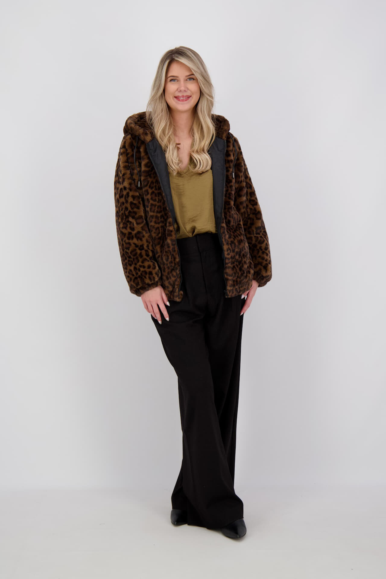 De Teddy Jas Pona van Freequent is een casual dames teddy jas met een opvallende dierenprint en capuchon. Deze gewatteerde jas biedt comfort en stijl voor elke gelegenheid. Perfect voor wie op zoek is naar een modieuze, warme en toegankelijke jas.