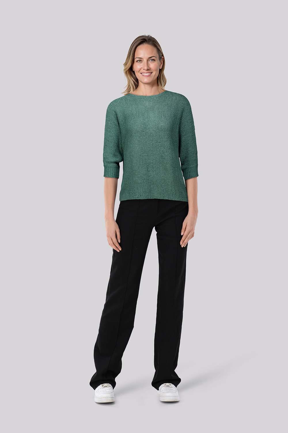 Top Tapper van Freequent is een top met casual, minimalistische uitstraling. Het model heeft een regular pasvorm, ronde hals en 3/4 mouwen met ribgebreide mouwboorden. De effen, fijngebreide structuur oogt rustig. Combineer met een rechte broek en sneakers voor een praktische, dagelijkse set.