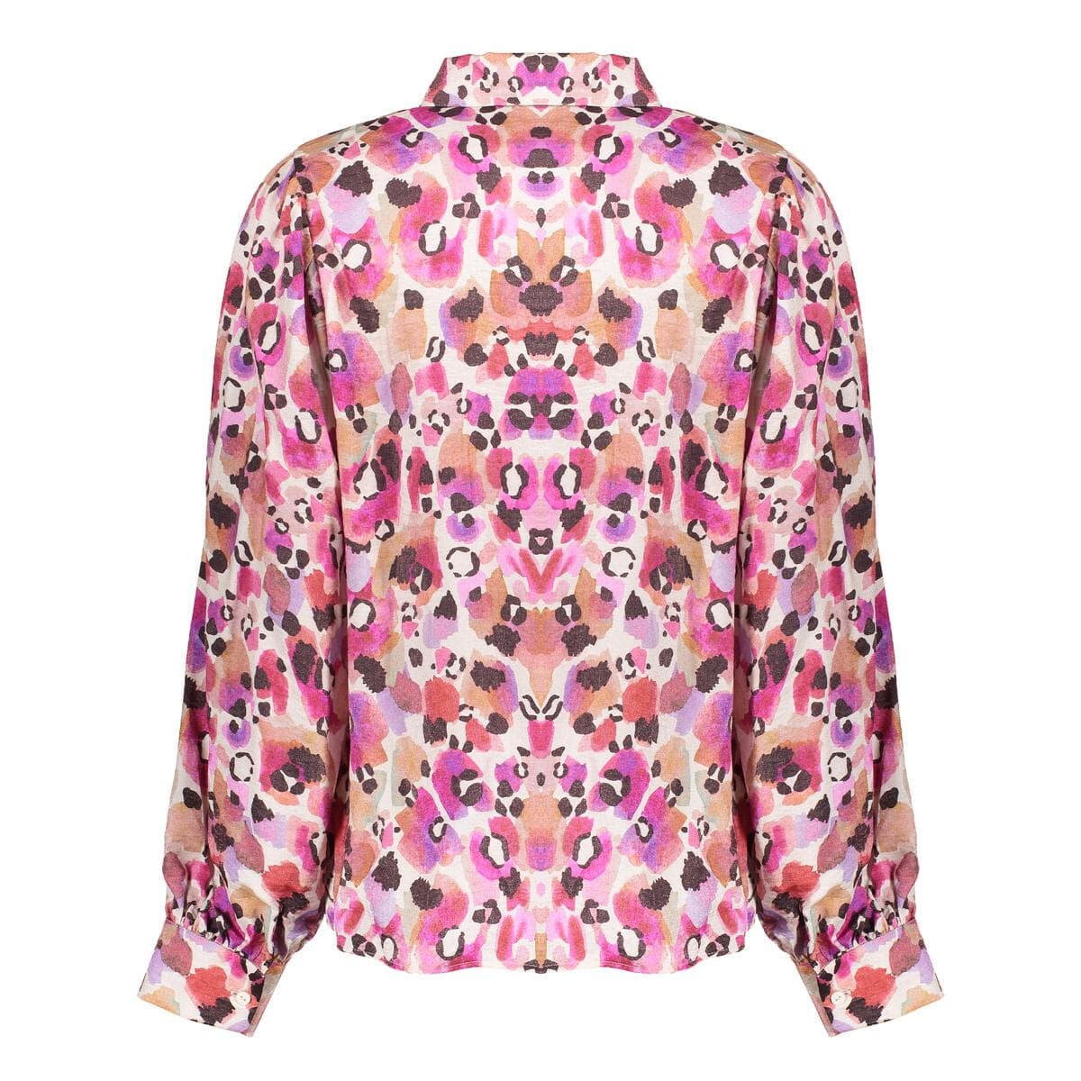Blouse Animal van Geisha is een trendy dames blouse met een panterprint. Deze blouse heeft een opstaande kraag en manchetten met knopen. De lange mouwen en de relaxte pasvorm maken het geschikt voor elke gelegenheid. De sluiting met knopen voegt een verfijnde touch toe.