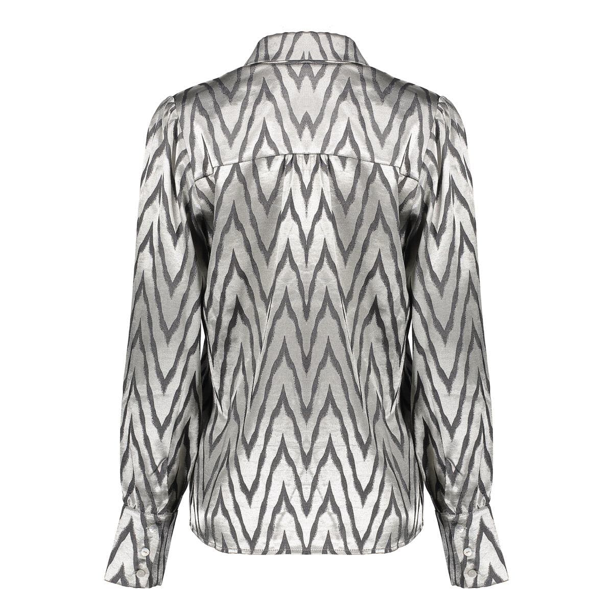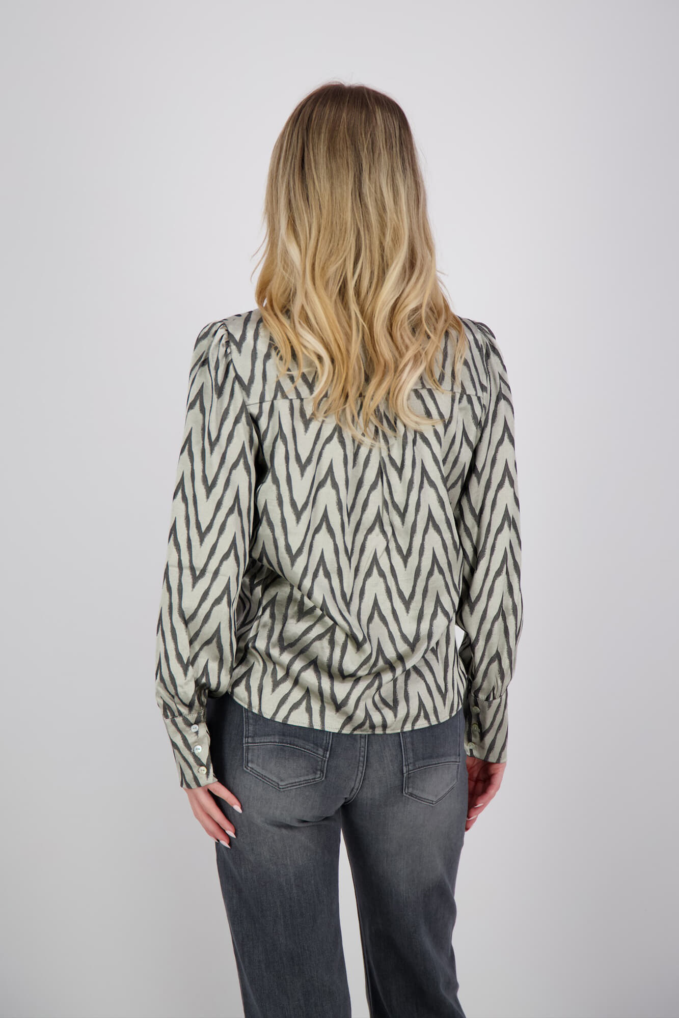De Blouse Animal Zilver van Geisha is een dames blouse met een opvallend dierlijk patroon en een strik kraag. De lange mouwen zijn voorzien van knoopmanchetten, wat een stijlvolle touch geeft. Deze blouse is perfect voor een trendy en elegante uitstraling.