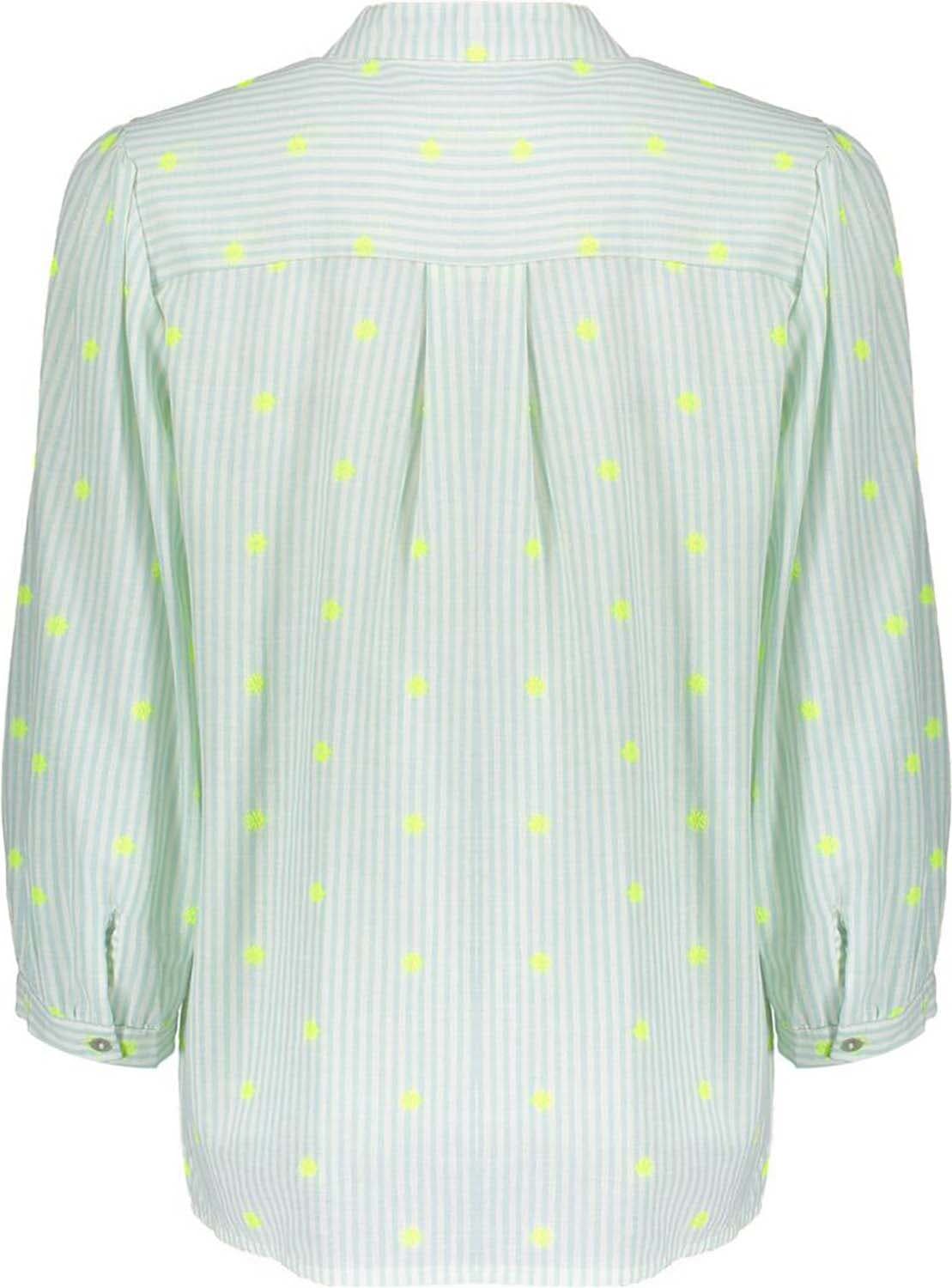 De Blouse Stripes van Geisha is een casual blouse met een opstaande kraag en lange mouwen met manchetten. Het streepjespatroon is verfraaid met subtiele stippen, wat een speels effect geeft. De losse pasvorm en knoopsluiting maken het comfortabel en stijlvol voor elke gelegenheid.