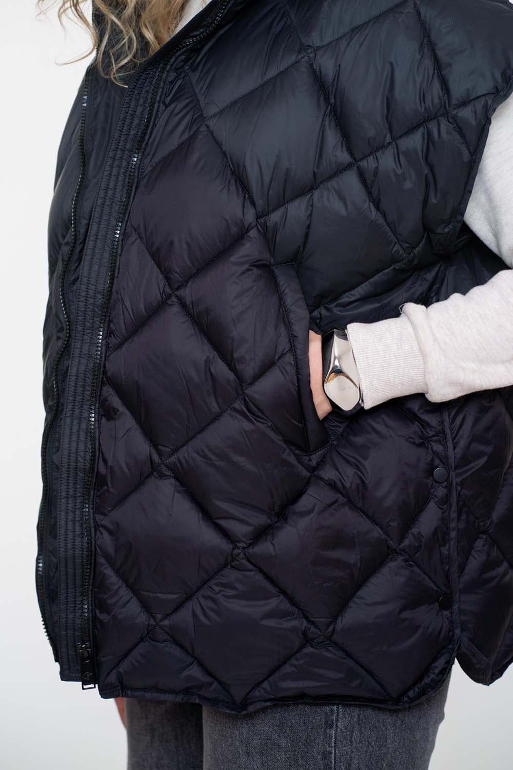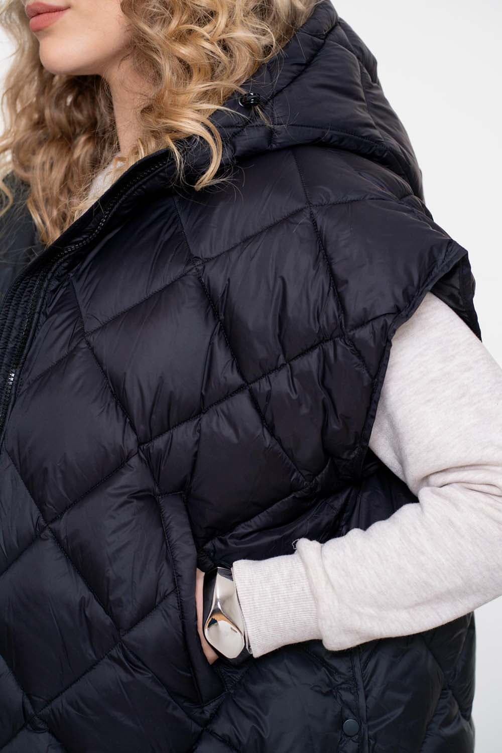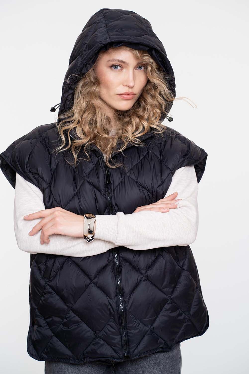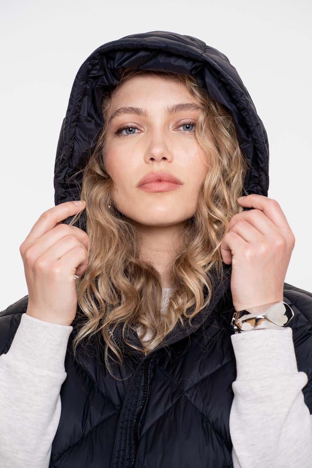 De Geisha bodywarmer is een stijlvolle gewateerde jas met een casual stijl. Voorzien van een capuchon en ritssluiting, biedt deze oversized jas comfort en warmte. De effen kleur en zakken op de voorzijde maken het ideaal voor dagelijks gebruik en veelzijdige combinaties.