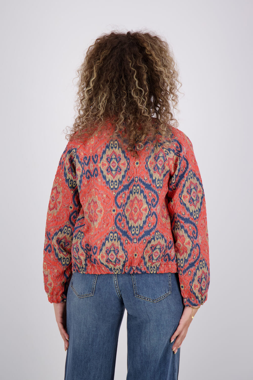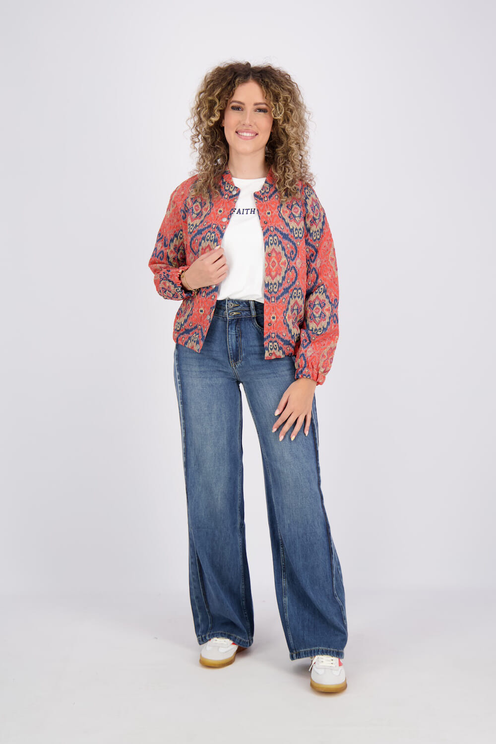 De Jas Print van Geisha is een bohemian dames jas met een opstaande kraag en lange mouwen. Het opvallende grafische patroon geeft een unieke touch, perfect voor degenen die houden van een modieuze uitstraling. Deze bomberjas biedt comfort en stijl in één.