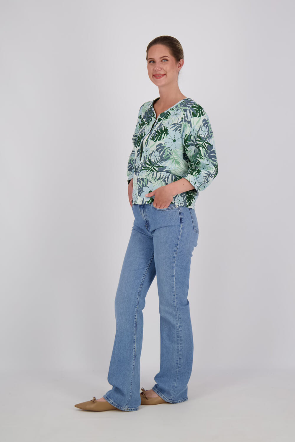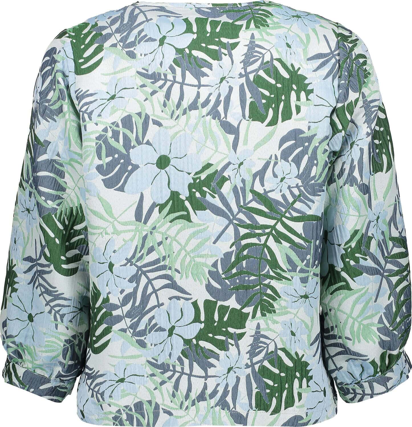 Dit jasje van Geisha is een stijlvolle zomerjas met een bloemenpatroon. De knoopsluiting en driekwart mouwen maken het tot een veelzijdig kledingstuk. Perfect voor een frisse zomerdag, combineert het comfort met een modieuze uitstraling, ideaal voor elke garderobe.