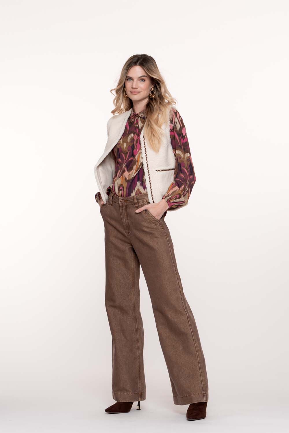Jeans Flair van Geisha, perfect voor casual dagen. Deze dames jeans combineert een bohemian stijl met praktische voor- en achterzakken, en een knoop- en ritssluiting. De flared pasvorm maakt het een veelzijdige keuze voor verschillende gelegenheden, waarbij comfort en stijl samenkomen.