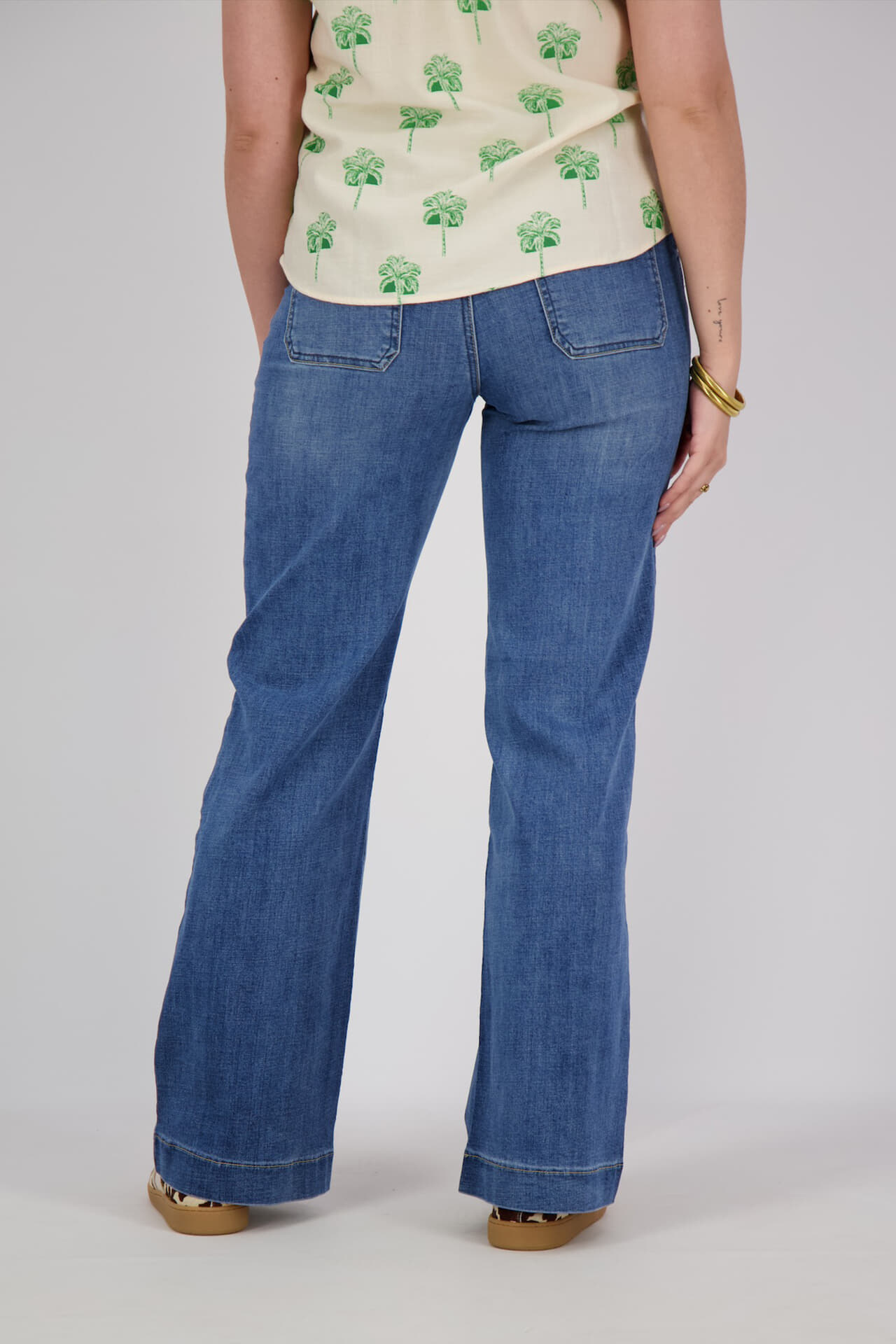 Jeans Merel van Geisha biedt een casual en stijlvolle flair. Deze dames jeans, met normale taille, heeft zowel voor- als achterzakken en een effen patroon. Ideaal voor dagelijks gebruik dankzij de flared pasvorm die comfort combineert met een eigentijdse look.