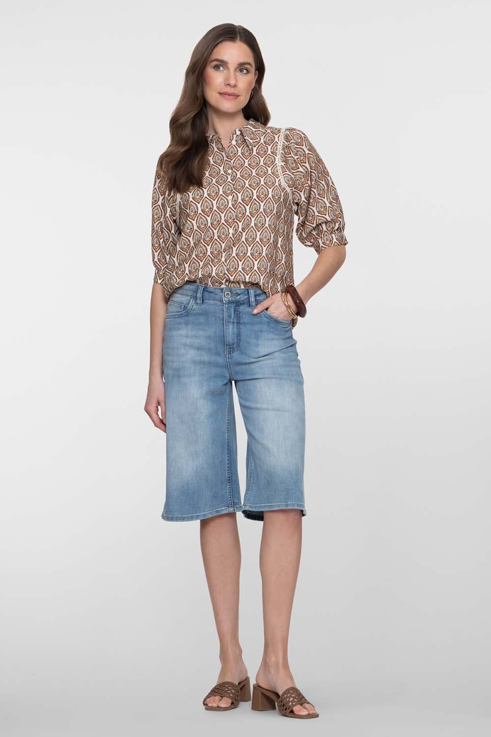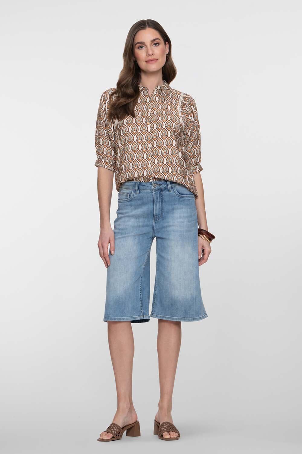 De Jeans short long van Geisha is een casual dames jeans met wijde pijpen. Het heeft een normale taille en is voorzien van voor- en achterzakken. De knoop- en ritssluiting zorgen voor gemak. Het effen patroon maakt het veelzijdig en stijlvol.