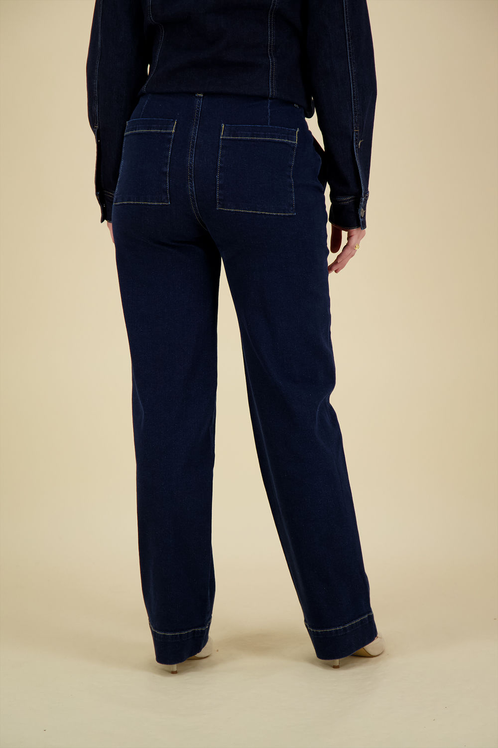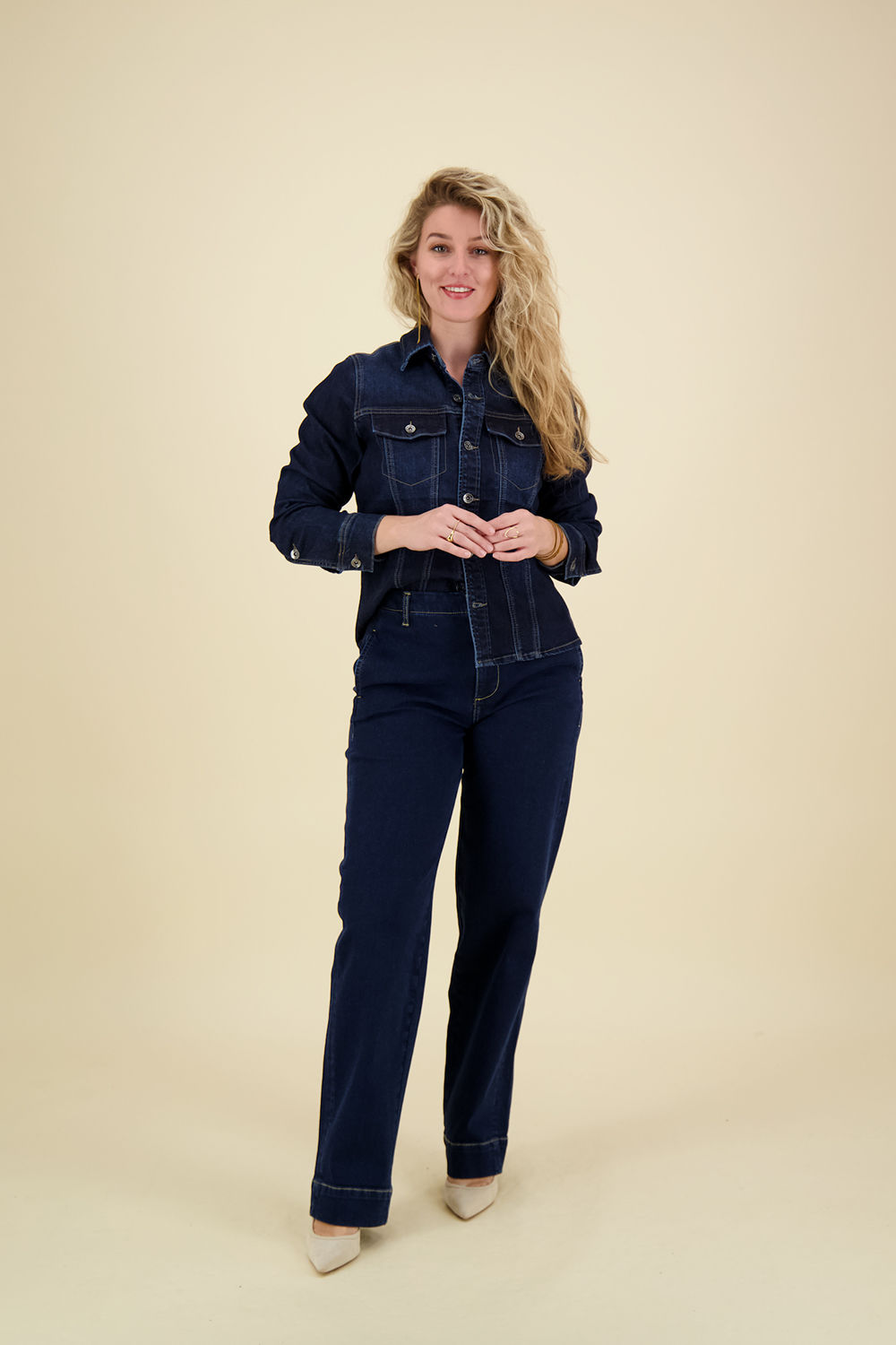 De Geisha dames high loose jeans combineert stijl met comfort en is ontworpen met een hoge taille voor een flatterende pasvorm. Deze jeans sluit met een knoop-ritssluiting en heeft steekzakken voor praktische opbergruimte. De broekspijpen zijn langer en wijd uitlopend, waarbij de jeans wijder uitloopt vanaf het bovenbeen naar onderen, wat zorgt voor een modieuze en comfortabele look. Een opvallende naad aan de broekspijp geeft een extra stijlvol detail. Door de grote hoeveelheid stretch biedt de jeans een uitzonderlijk draagcomfort, waardoor dit waarschijnlijk je nieuwe favoriete jeans wordt!