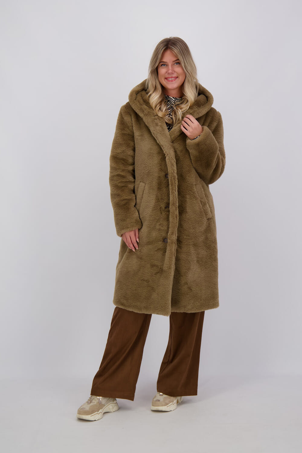 De Mantel met Capuchon Fake Fur van Geisha is een stijlvolle dames jas met een casual en verfijnde uitstraling. Uitgerust met een capuchon en knopen, biedt deze tussenjas een regular pasvorm en lange mouwen. Het effen patroon maakt het een veelzijdige keuze.