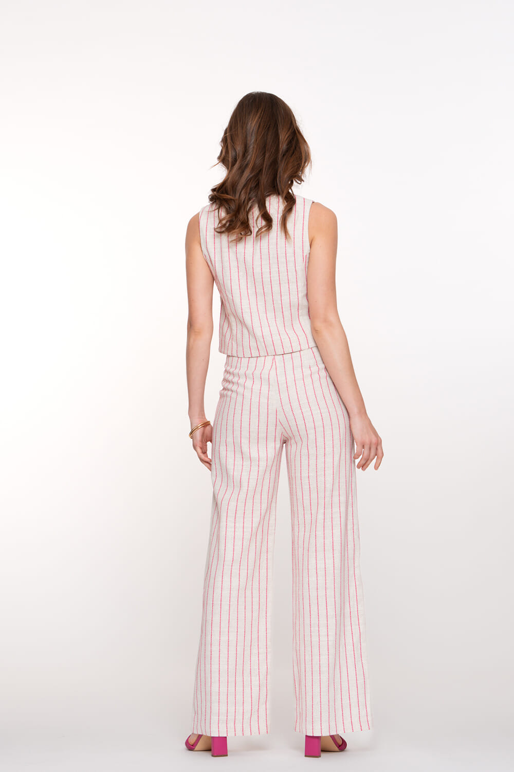 De Pantalon van Geisha is een stijlvolle dames lange broek met een wijde pijp en een opvallend streeppatroon. Het ontwerp combineert comfort en mode, waardoor het ideaal is voor diverse gelegenheden. Perfect voor wie houdt van een moderne en toch tijdloze uitstraling.