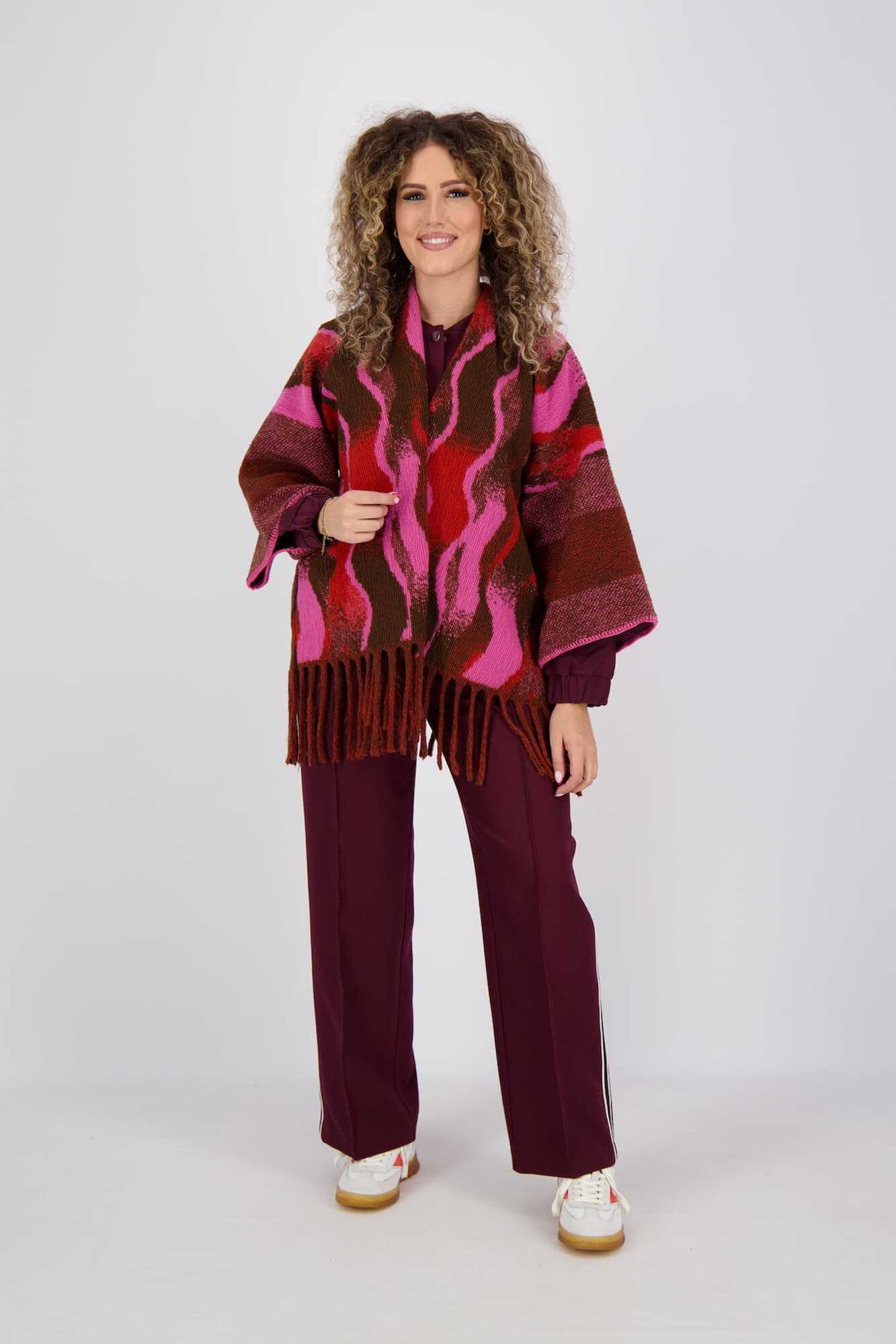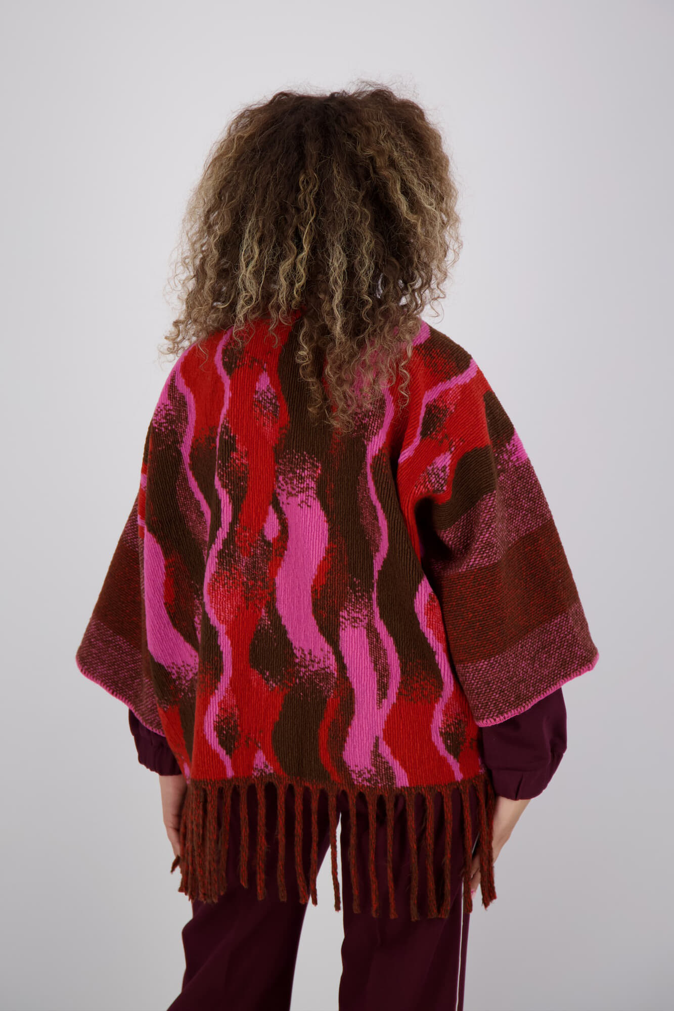 De Poncho Print van Geisha is een bohemian, casual dames poncho met een opvallend all-over patroon. Deze stijlvolle en warme poncho is perfect voor een trendy gelegenheid. De franjes aan de onderkant voegen een speelse toets toe aan dit modieuze kledingstuk.