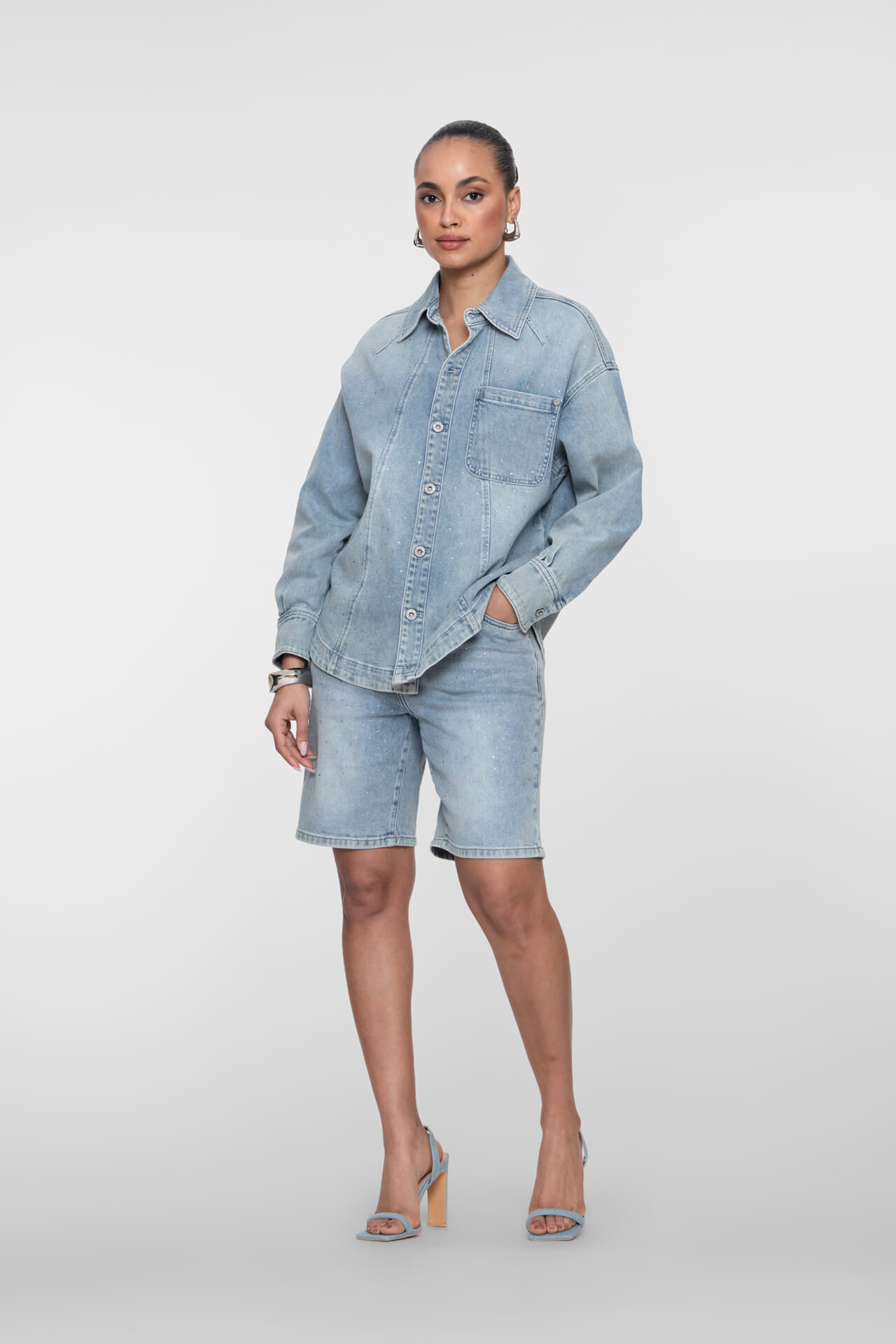 Jeans shorts stones van Geisha is een casual dames short met een normale taille en lange mouwen. Voorzien van voor- en achterzakken biedt het een praktische en modieuze keuze voor dagelijks gebruik. Ideaal voor degenen die comfort en stijl combineren in hun garderobe.