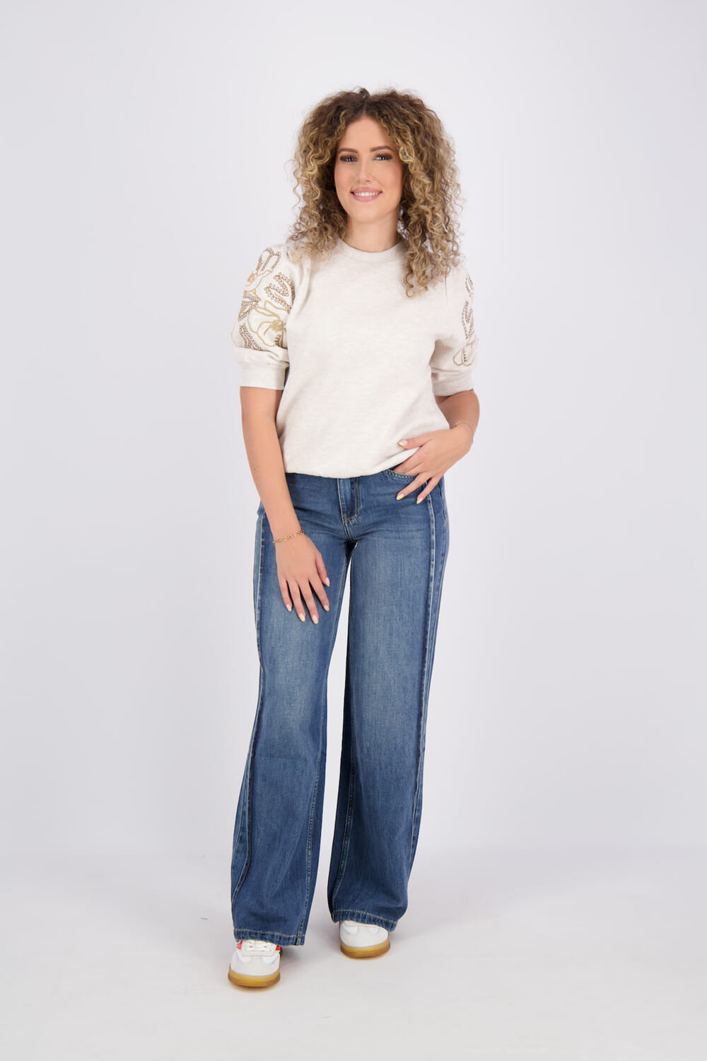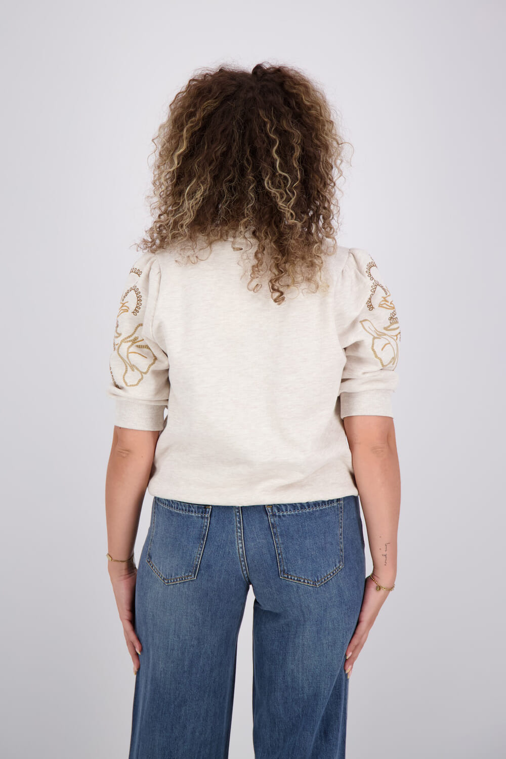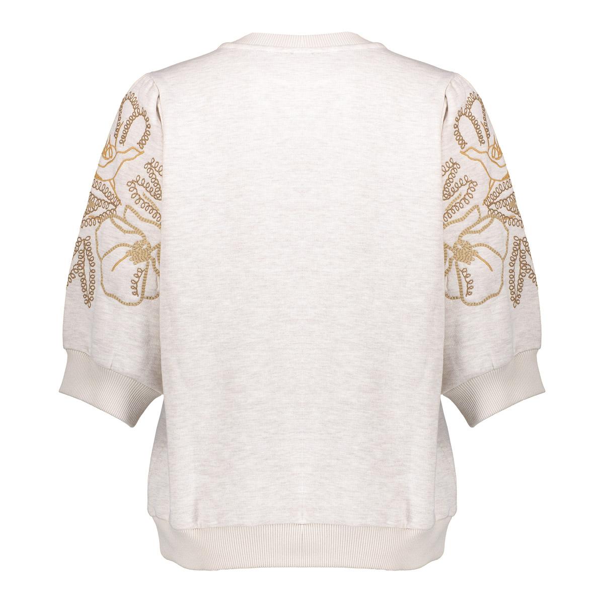 De Sweater Embroidery Korte Mouw van Geisha is een stijlvolle sweater met een casual uitstraling. Het ribgebreide mouwboord en de driekwart mouwen geven een comfortabele pasvorm, terwijl het bloemenpatroon op de mouwen een modieuze touch toevoegt aan deze veelzijdige dames sweater.