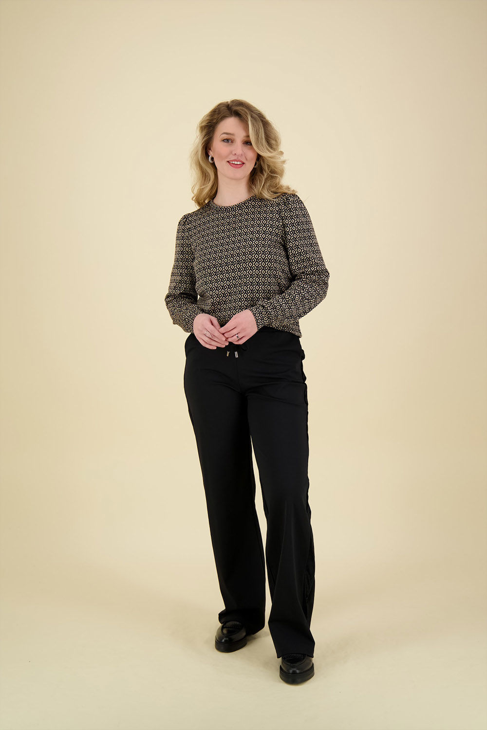 De Geisha blouse combineert een stijlvolle look met veelzijdigheid. De lange mouwen en het verfijnde dessin geven de blouse een modieuze uitstraling. De ronde halslijn en elastische manchetten maken de blouse geschikt voor zowel casual als zakelijke gelegenheden. Het is een perfecte keuze voor een elegante en comfortabele outfit.