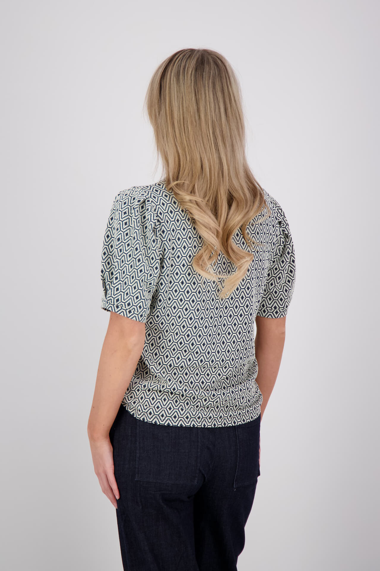 De Top Jacquard van Geisha is een casual dames top korte mouw met een grafisch patroon, ontworpen voor een stijlvolle en toegankelijke uitstraling. De luchtige korte mouwen maken deze top perfect voor elk moment, terwijl het moderne ontwerp veelzijdigheid biedt in elke garderobe.